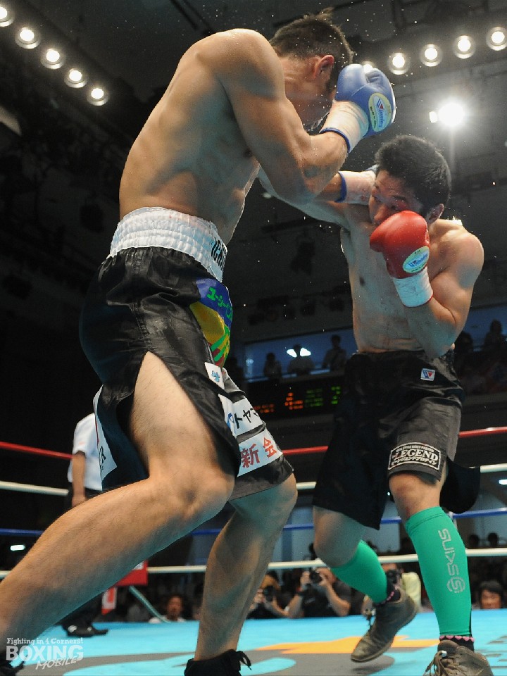試合:左フックを狙う宮崎に対し、近藤はジャブで距離を測り慎重な試合運びを見せるとワンツーで鼻血を流させた。距離をつかんだ近藤は2回に右フックで腰を沈めさせるとジャブをヒット。残り30秒を切ったところで右フックを振り抜き片膝をつかせた。守勢を強いられた宮崎は打ち合いに持ち込み現状打破を狙うが、近藤はこれに真っ向から応じ右カウンターで2度目のダウンを奪った。ここも立ち上がり懸命にパンチを返した宮崎だが、ワンツーで追撃されダメージが甚大。すると5回、ペースを維持した近藤が右ショートをねじ込み3度目のダウンを演出。ダメージの深さを見たレフェリーがノーカウントで試合を止めた。