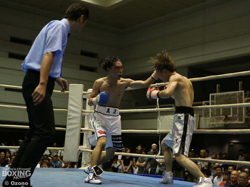 試合:両者ともゴングと同時に元気よく飛び出して細かい連打の応酬。しかし次第にサウスポー龍虎の左ストレートが決まり出すとラウンド終盤にワンツー連打を浴びせて先制のダウンをゲット。2回、後手に回った池田は上下にパンチを散らすが龍虎の勢いを止めることが出来ず。このラウンド、龍虎は偶然のバッティングで右目上をカットした。お互い手数を落とさず激しい打撃戦を繰り広げたが、龍虎の回転力が上回った。4回、池田は左ボディから連打で逆転を狙うが龍虎も手数で譲らなかった。