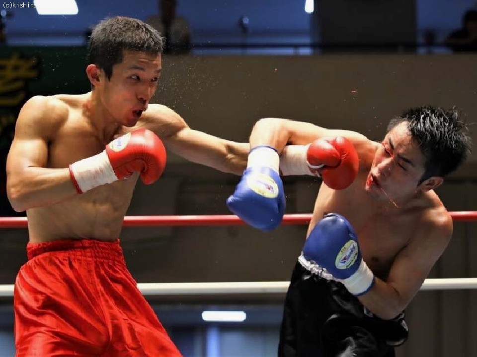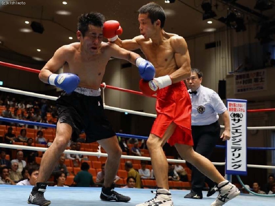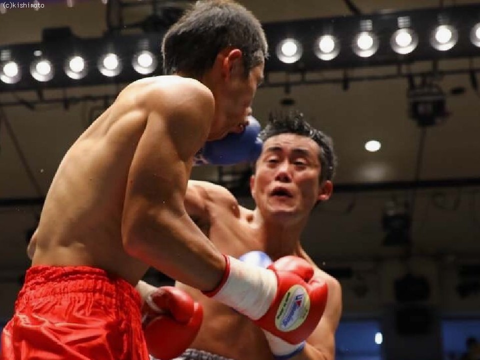 試合:開始から永冨が左右フックで積極的に仕掛ける。後手に回った36歳瀧澤だが相手が出てきたところにカウンターの右フックを決めて形勢逆転。その後も瀧澤がボディへの連打から右アッパーを突き上げ優位に進めた。3回、中間距離でパンチを交錯させていたが、永冨の右ストレートが先に決まりダウンを先取。ペースを奪い返した永冨は4回もワンツーで迎え撃ちポイントを奪った。