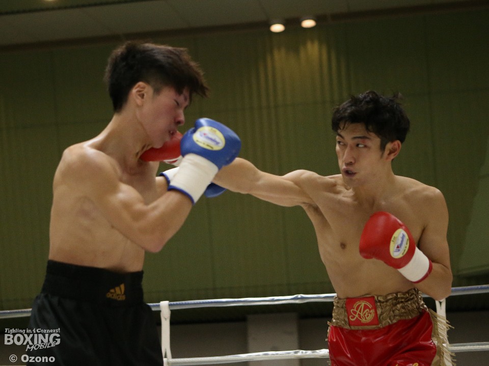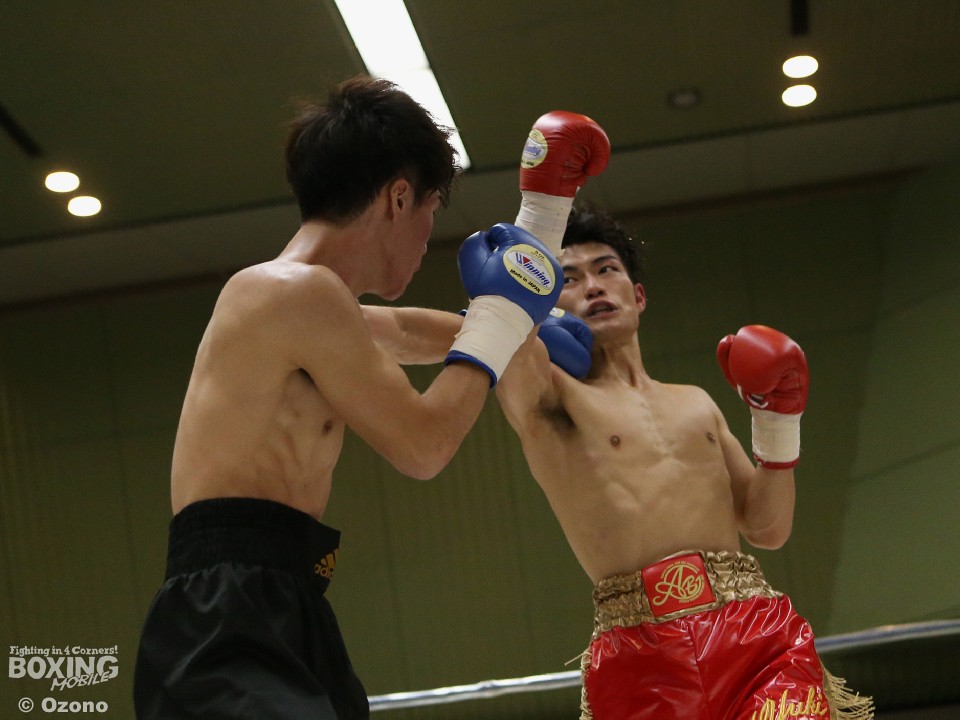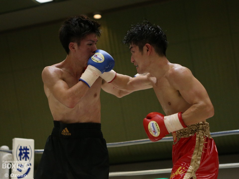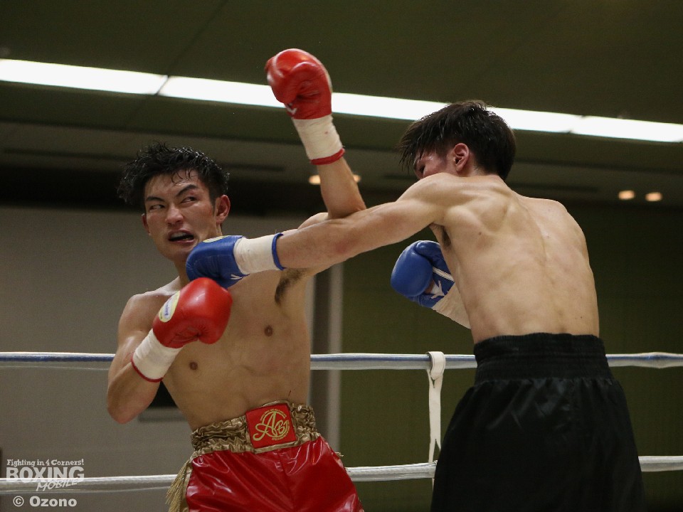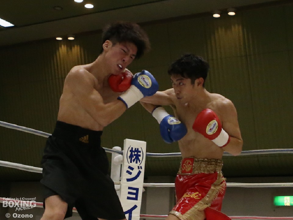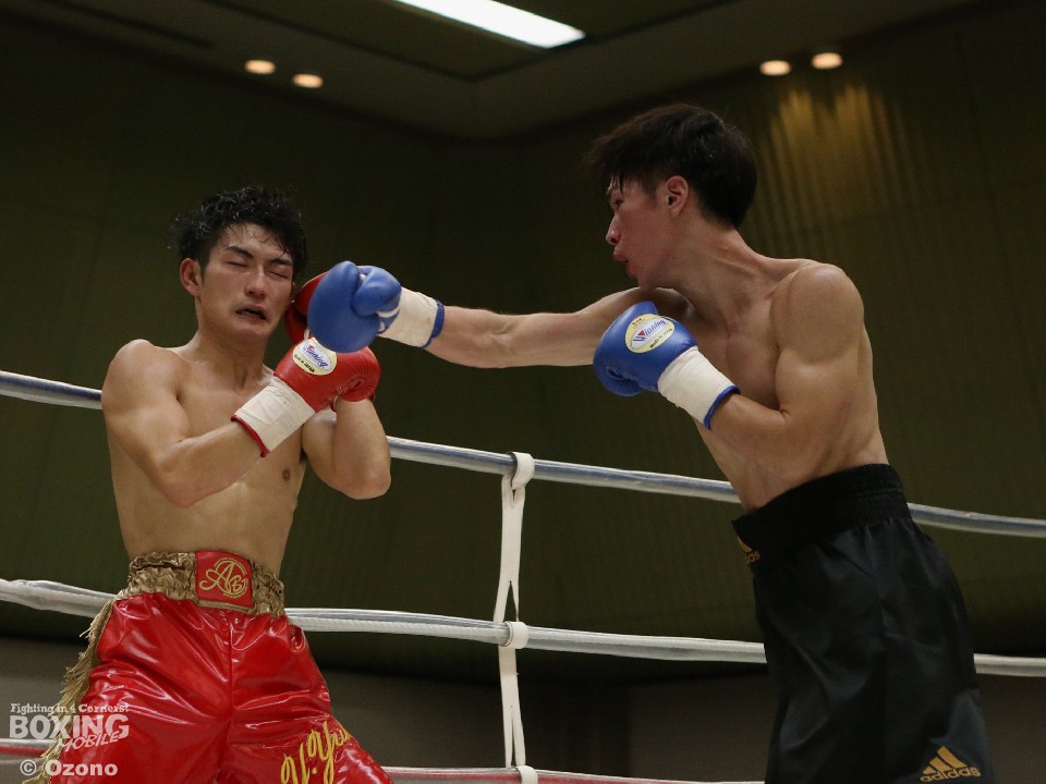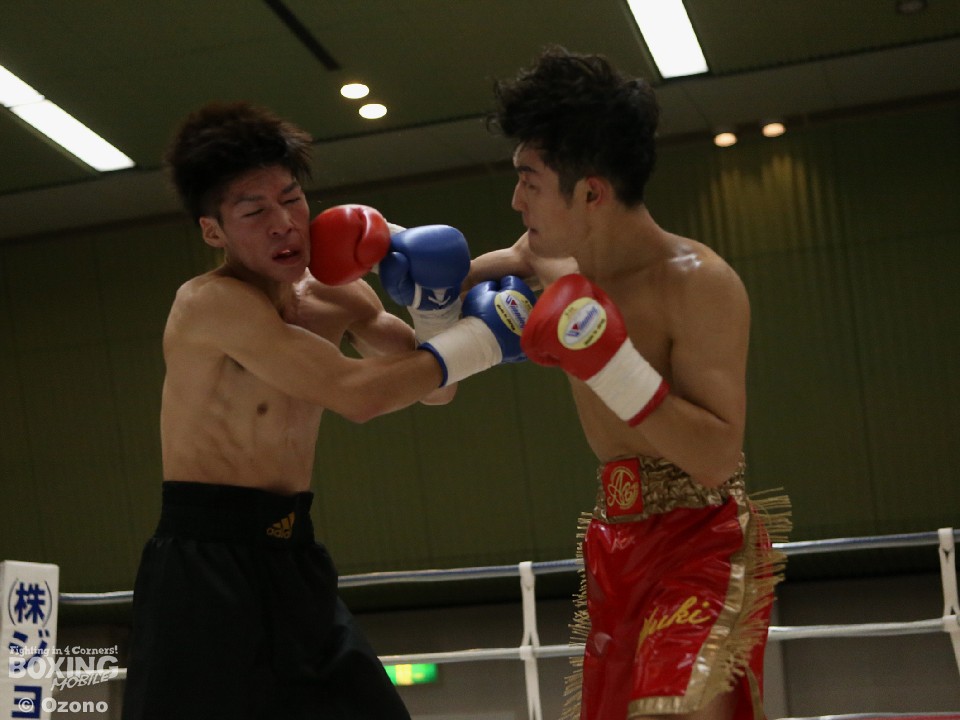 試合:湯浅がジャブから右ストレートを飛ばすのに対し、硬さが見えた山田も連打で対抗したが、湯浅が手数で上回りダメージを溜めた。それでも2回は湯浅の手数が落ちたところで山下がワンツーをヒット。3回も打ち疲れが見える湯浅を捉え、パンチをまとめた。4回は疲労の湯浅も必至のラッシュで粘り、ともに決定打がないままゴングとなった。