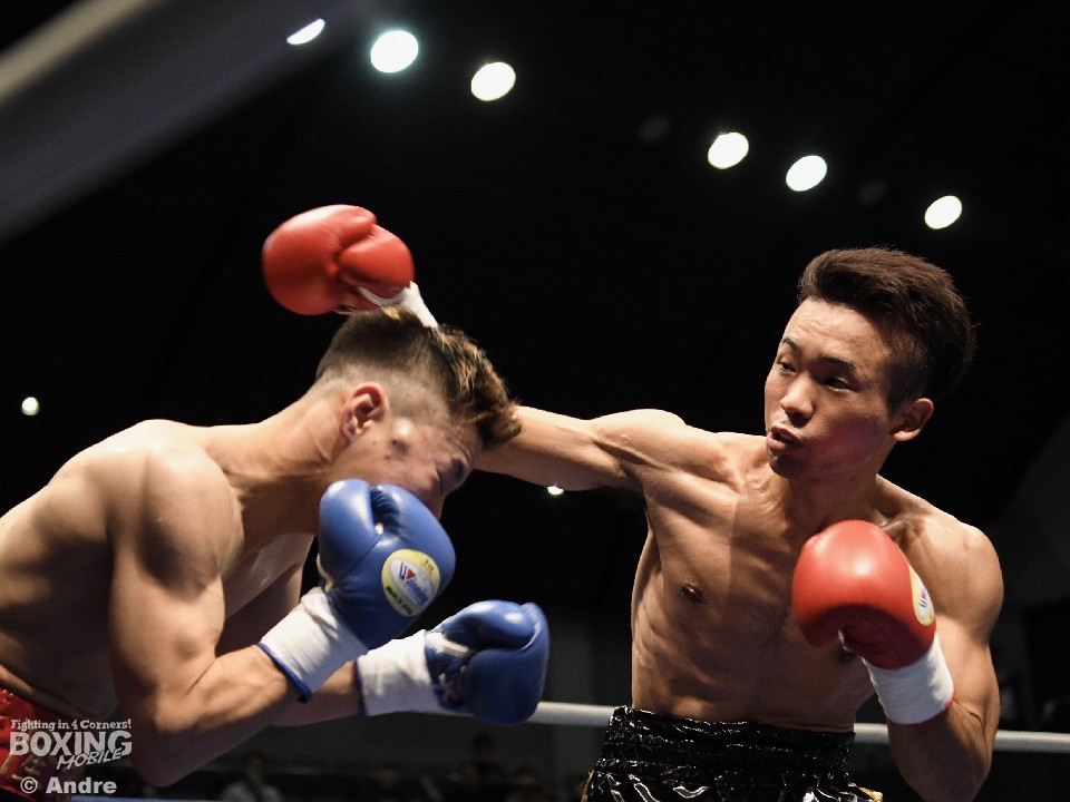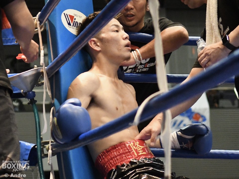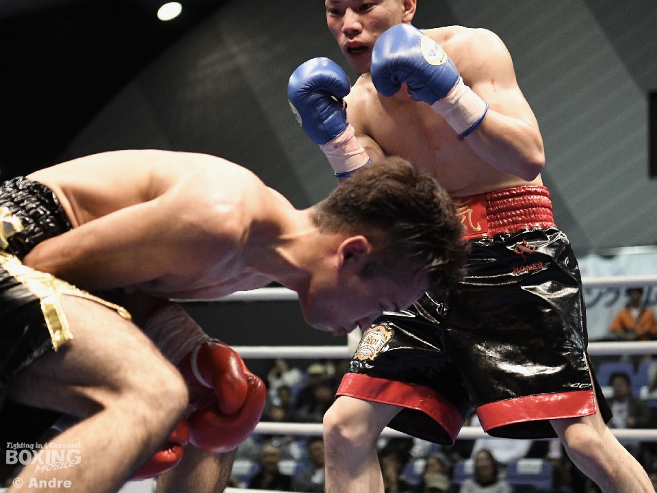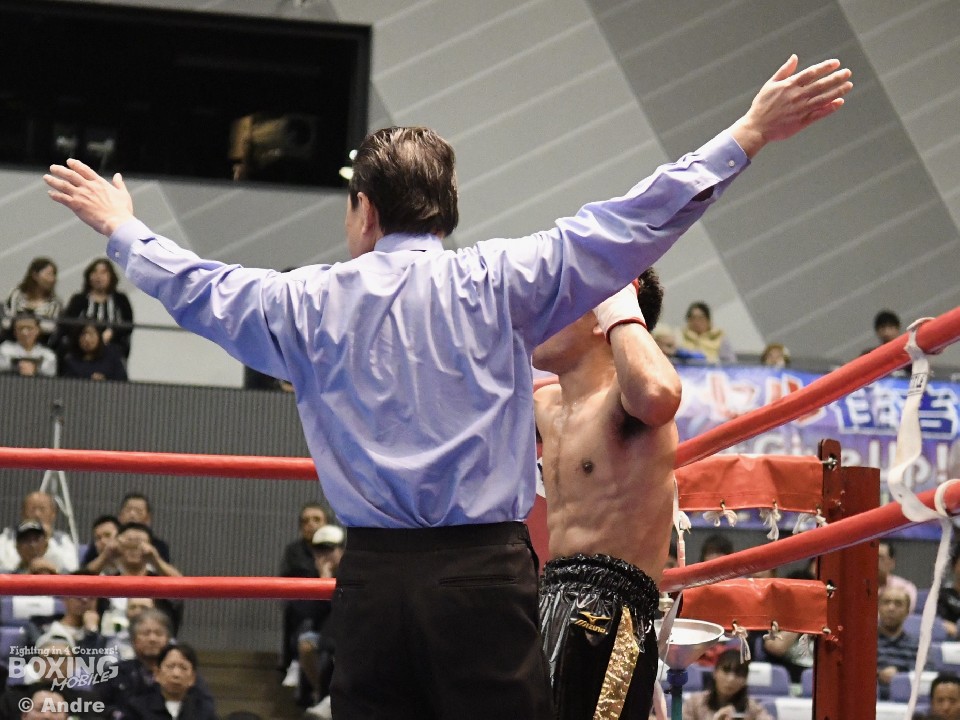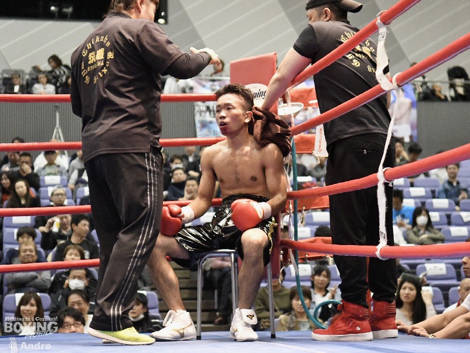 試合:低い姿勢の両者はフックの応酬で試合をスタート。尾崎はガードを固めて前に出ると頭の低い前村に右アッパーを好打した。対して、前村は左右のアッパーからわずかに距離を作るとワンツーを打ち抜いた。3ラウンド中盤、前村の左ボディが決まり尾崎の手が止まる。すると4ラウンド中盤、前村の鋭く重い左ボディが決まり尾崎がくの字になり苦悶の表情でダウン。そのまま10カウントを聞かせた前村のKO勝利。