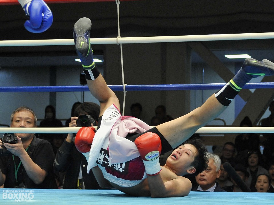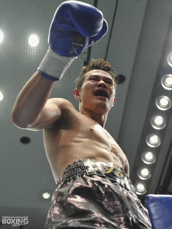 試合:開始30秒で橘の右カウンターが決まり鮮やかなダウンを奪う。立ち上がった山本は、ジャブを散らし初回を乗り切った。2回、橘は右をねじ込み2度目のダウンを演出。さらに上下にコンビネーションを決めて着実にダメージを与えた。手負いの山本だが、3回に得意の右を好打し必死の反撃。それでも橘は集中力を切らさず、パンチをまとめて優勢を印象付けた。5回、逆転を狙う山本だが、ボディを効かされ連打を浴びるとビニー・マーチンが抱きかかえた。橘が3度目の挑戦で新人王に輝き、敢闘賞を受賞した。