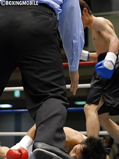 試合:34歳の小野がスタートからジャブで距離を保ち、左フック・ワンツーで攻め込みペースを掴みにかかる。しかし、小野がワンツーから左フックを打ち込もうとした時、左フックに星野のストレートがカウンターでジャストミート。崩れる様に前のめりでダウンする小野。レフェリーが即座に試合を止め、小野は担架退場となった。