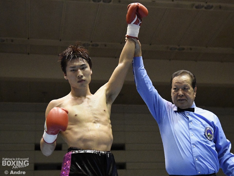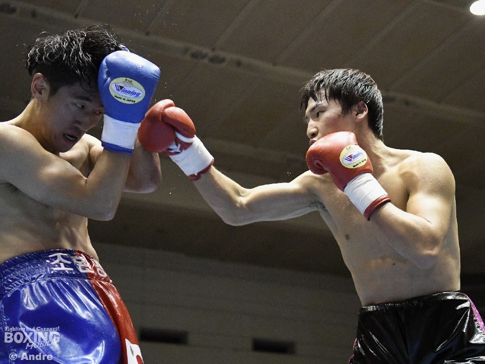 試合: サウスポーの高橋はジャブで距離を詰めると接近して連打を浴びせた。対して、チョは踏み込んだ左フックを振るう。中盤、高橋の左ボディが決まりチョの動きが止まる。後半に入るとチョは右の一発に力を込めたが単発に終わり、高橋の連打が決まった。終始手数で圧倒した高橋が判定で勝利した。