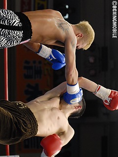 試合:両者踏み込む為、序盤からクリンチが多くなる。2Rには縺れた際、加藤が田中の後頭部を叩いてしまいラビットパンチで減点1。終了時、田中は左肘を痛めたのか左腕を気にする仕草を見せる。3R以降、田中は右1本でのボクシング。互いがプレスを掛けクリンチの展開に。左腕が使えない田中は、4Rにホールディングで減点1。その後も加藤にストレート・左フックをヒットされ6R、ワンツーから連打を打ち込まれたところでレフェリーストップとなった。