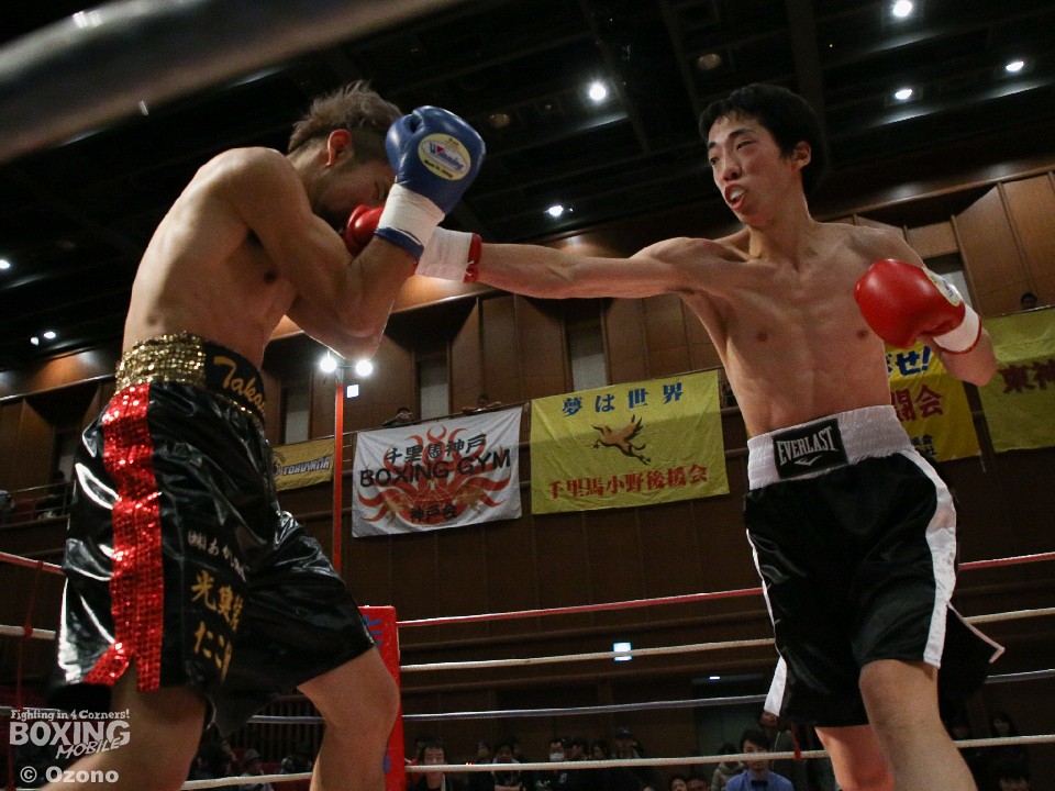 試合:アップライトからワンツーを狙う星野に対し、前田は重心を低くもぐり込みながらオーバーハンドを打ち込むが、2回終了間際に星野の右をカウンターで浴びダウン。ポイントの挽回を図る前田は続く3回、ワイルドなフックで攻め立てるが、冷静にワンツーで応戦した星野が判定勝ち。