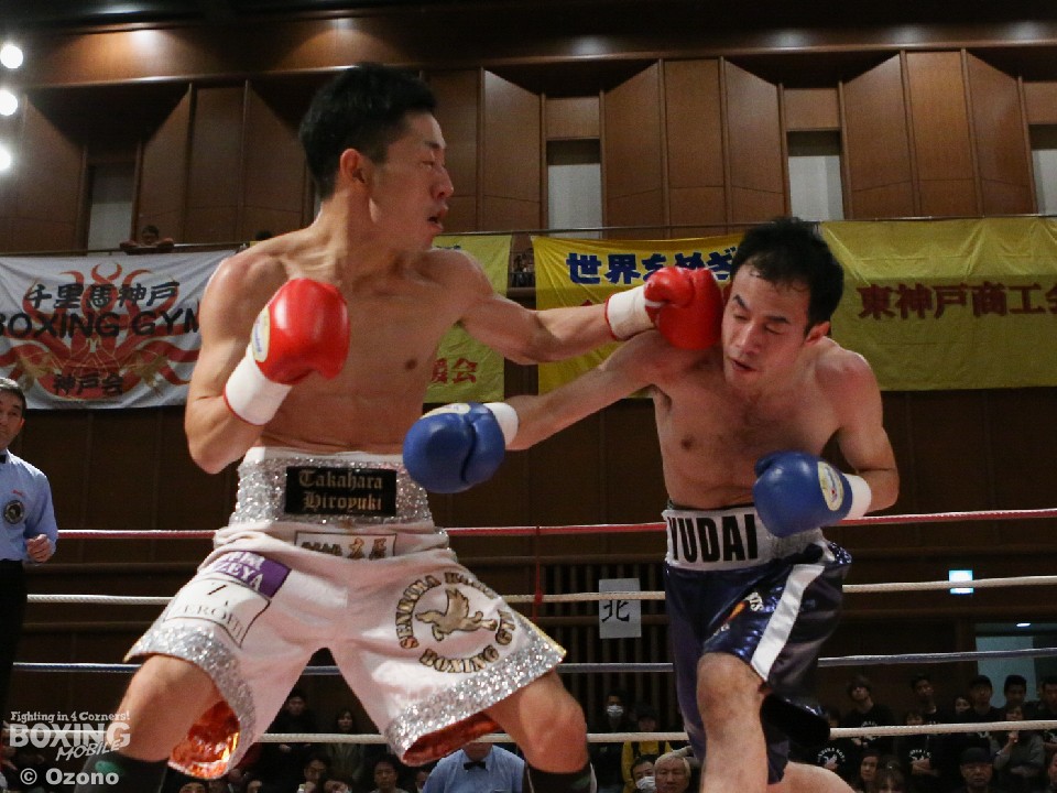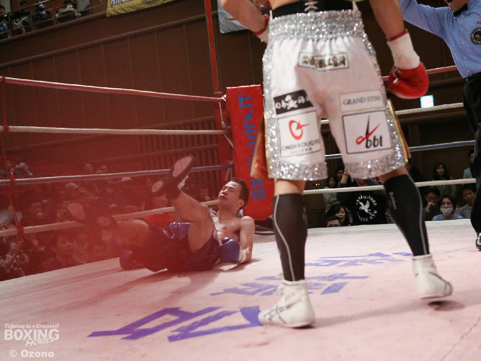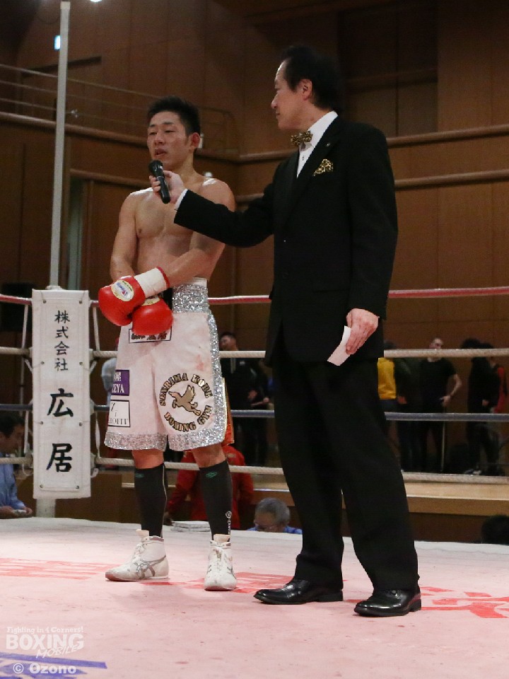 試合:先に距離を掴んだ高原が早くも山川をロープに詰め、右ストレートをヒット。山川もここでワンツーを返すが、空転が目立った。2回に入ると高原が完全に距離を支配し右で追い立てるが、3回は狙いすぎたのか手数が落ち、そこを突いた山川が前に出た。しかし、5回は高原が立て直し、再び右ストレートを好打。山川も打ち返すが、ダメージの色が濃く、6回に詰められたところで右を浴びダウン。10カウントが数え上げられた。