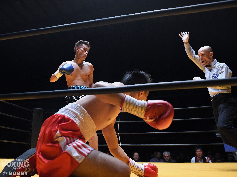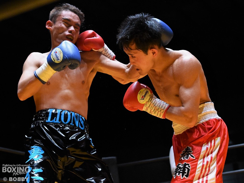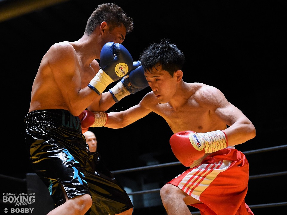 試合:中間距離でジャブの差し合いから始まった試合は、高田がダブルのコンビネーションを決めれば、伊佐もワンツー連打で応戦。軽量級らしいスピーディーな攻防を繰り広げる。2回、高田は打ってはサイドに動きリズム感のある攻撃を見せると、左フックから返しの右で先制のダウンを奪った。3回も高田がシャープな右を決めてペースを維持。失点を挽回したい伊佐は距離を詰めて左右をまとめた。5回、伊佐はプレスを強めてボディへパンチを決めて挽回。6回、高田は伊佐のボディ攻撃を受けてトランクスを上げる仕草を見せたが、高田は回転のある連打で流れを渡さなかった。