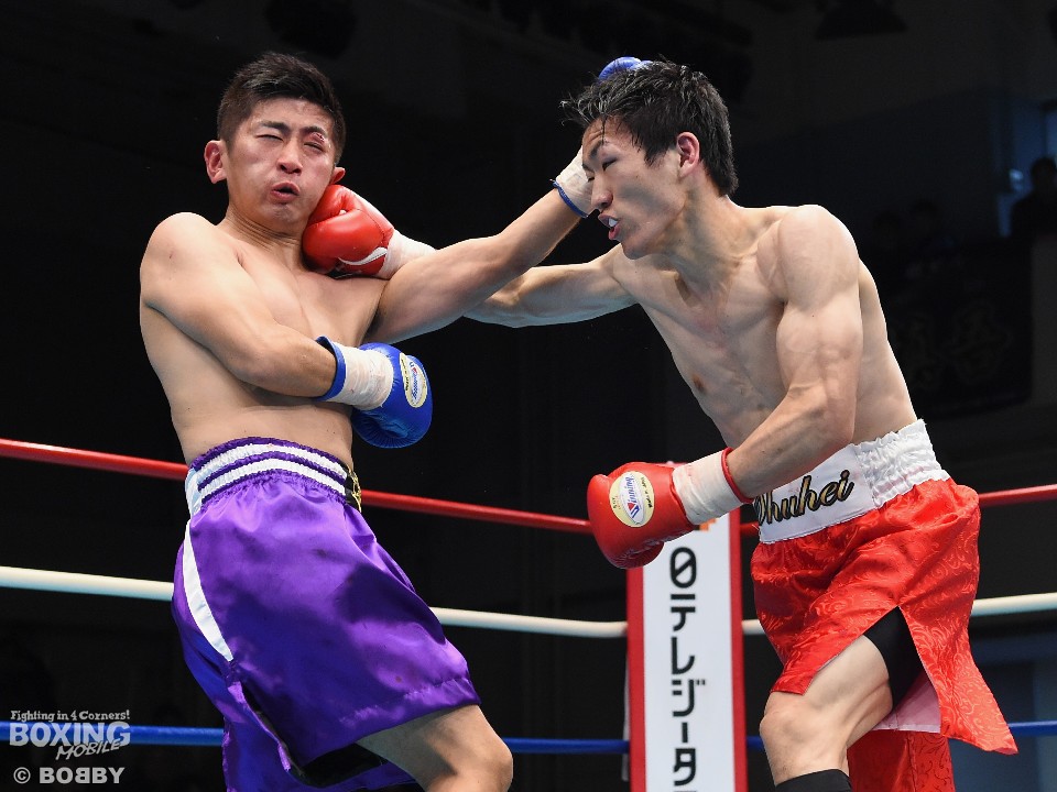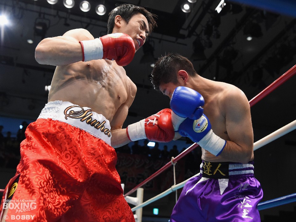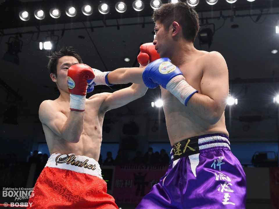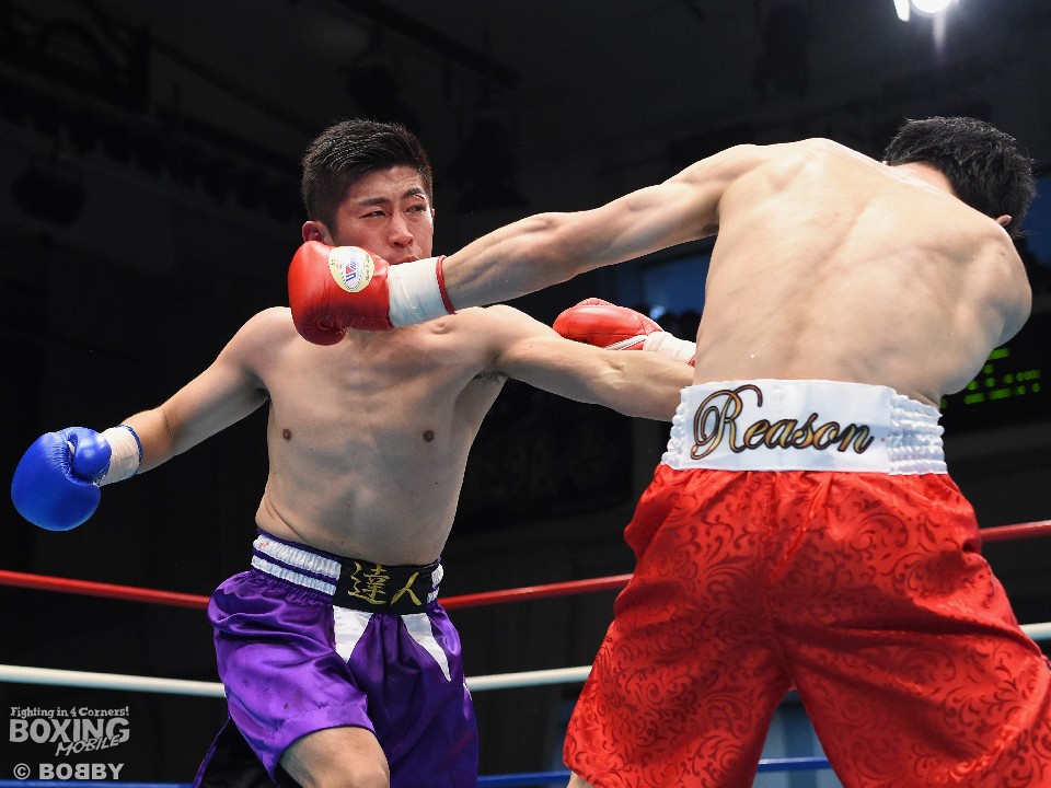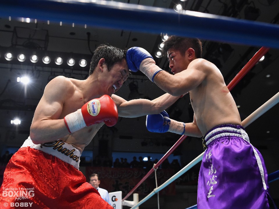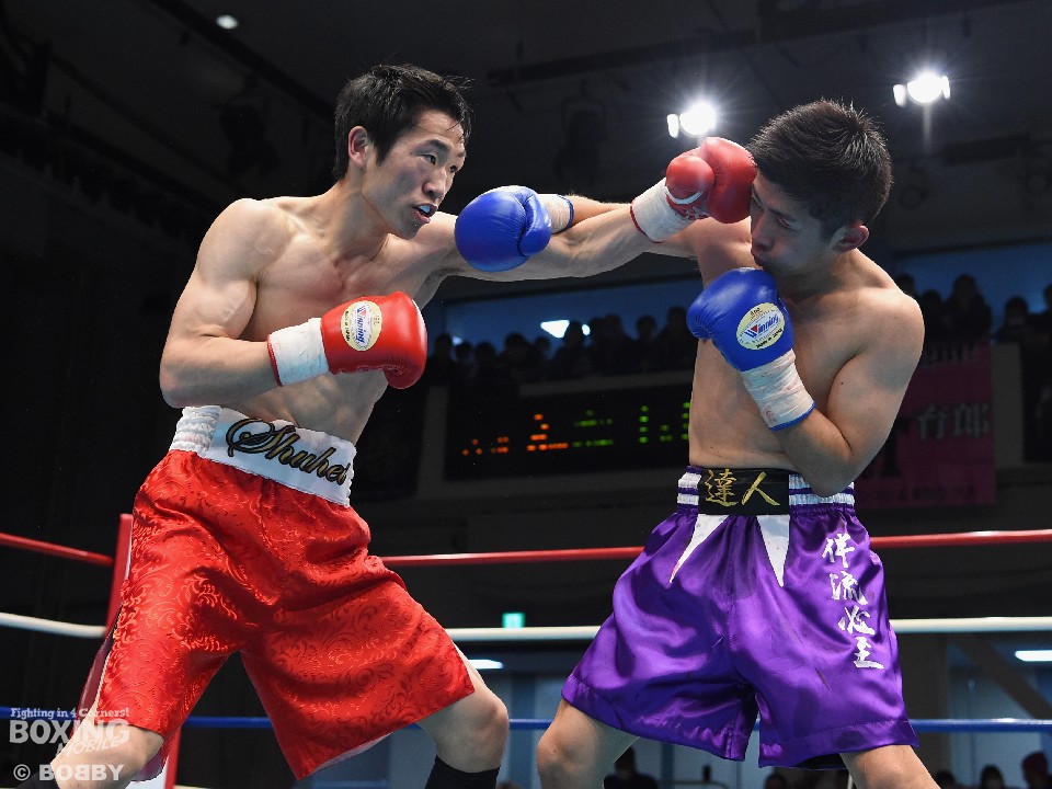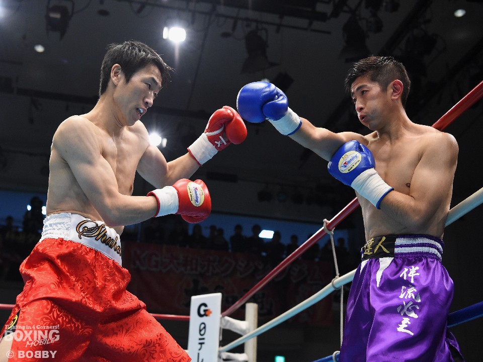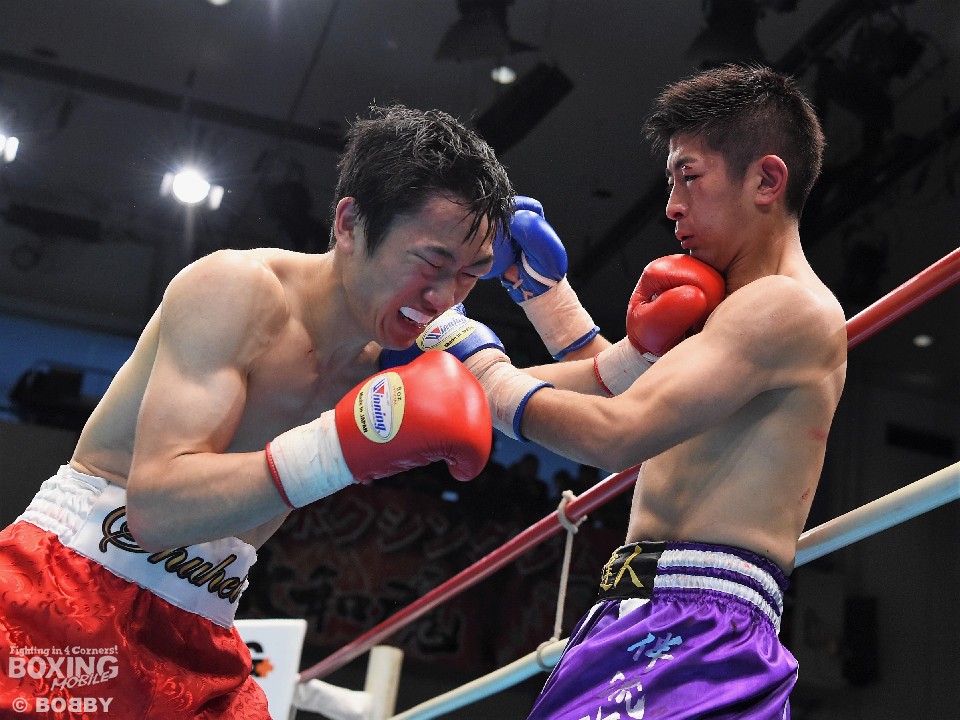 試合:デビュー戦の山中と10年ぶりに復帰した服部の対戦。立ち上がり、山中が右ストレート狙いで先手を奪うと、5戦のキャリアを持つサウスポーの服部も距離を作っては右フックを返し対抗。しかし、回転で山中に上回られると、2回は右を効かされ集中打を浴びた。それでもしぶとさを見せ、3回はボディを攻め、終盤には山中の打ち終わりに左を合わせダウンを奪った。最終4回は山中が回転力を発揮しダウンポイントを取り返しに出たが、服部も右ストレートを外しては左を上下に突き刺し、最後は激しく打ち合った。