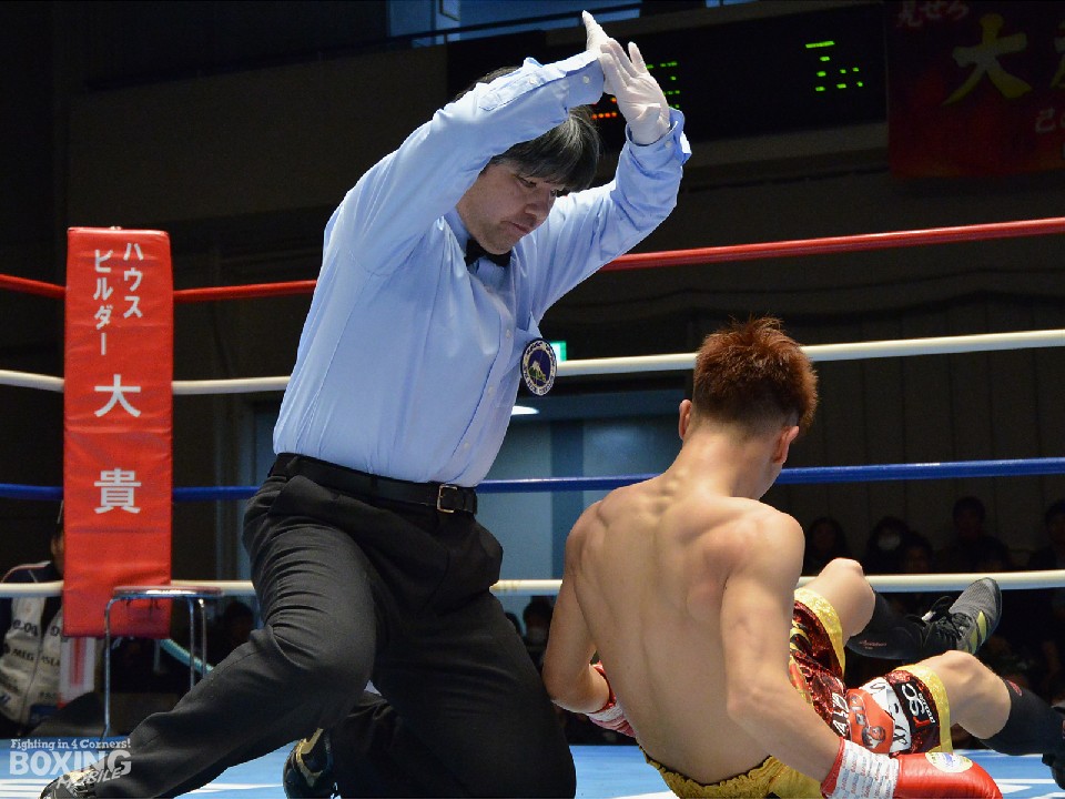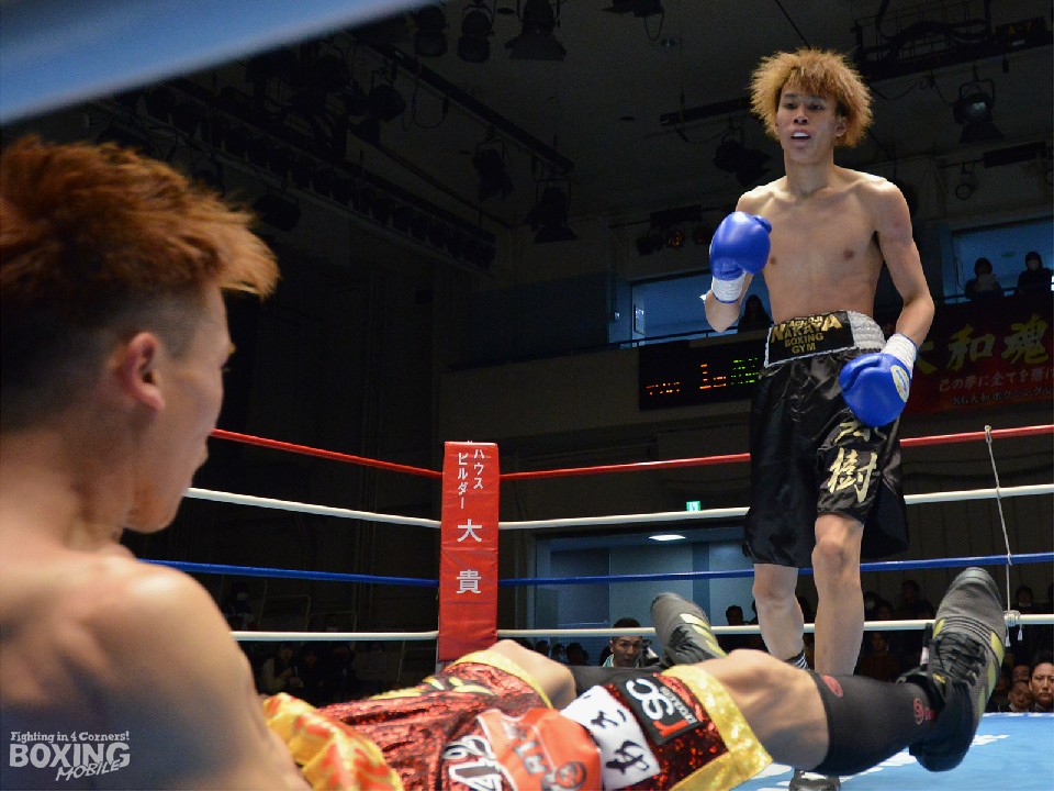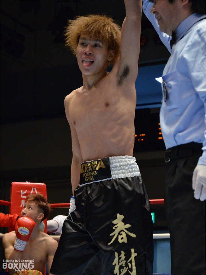 試合:臼井がジャブから力強い左フックを仕かけるのに対し、二佐はサークリングしながら様子を伺う。初回残り20秒で臼井の右ストレートがものの見事に決まり先制のダウンを演出。立ち上がった二佐に左フックを決めてフィニッシュした。