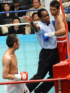 試合:立ち上がり、互いにジャブで牽制するが、大久保が左ボディを軸に左フック・右ストレートを的確にヒットさせ主導権を奪う。ケリーボーイもワンツーフックを返すがやや大降り。大久保はブロックしクリーンヒットを許さない。4R以降、大久保がプレスを掛け、左ボディ・左フックで攻め込み、右ストレートをヒットさせダメージを与える。7R、大久保は、的確にダメージを与えて来た左ボディを軸に、右ストレート・左フックでロープに詰めると、追い討ちの右ストレートをクリーンヒットさせた所でレフェリーが危険と判断し試合終了。大久保が磐石と言える内容で3度目の防衛に成功した。