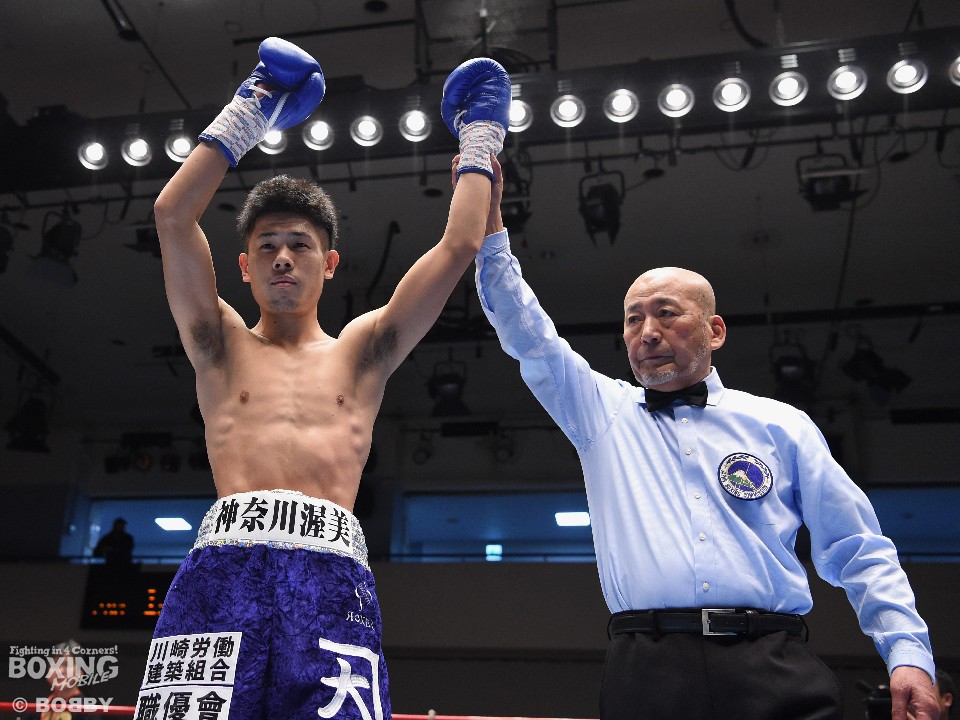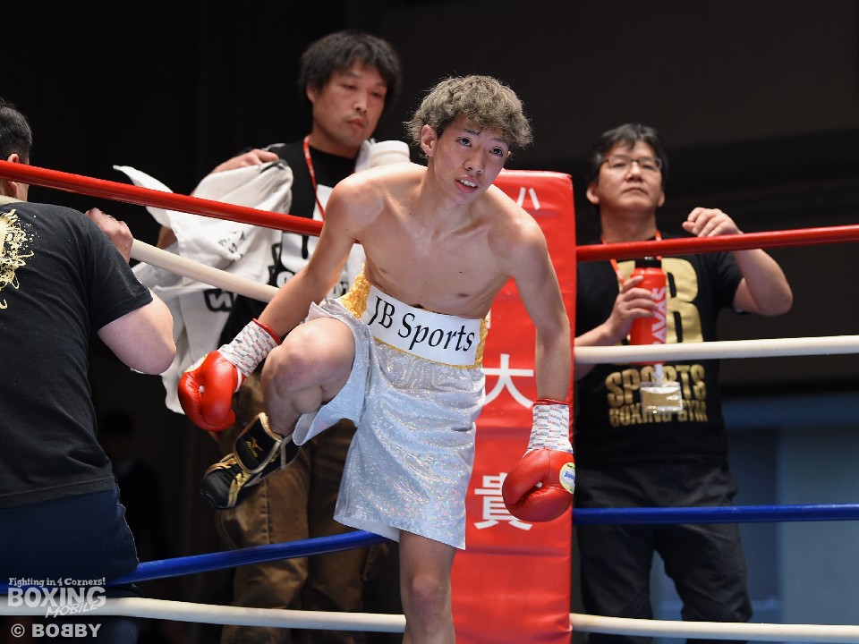 試合:デビュー同士の一戦は福田が力強い左右フックの連打で先にペースを掴み、1分過ぎに左フックを効かすと返しの右でダウンを奪った。まともに右を浴び倒れた本間を見て、レフェリーはタオルが投入されると同時に試合を止めた。
