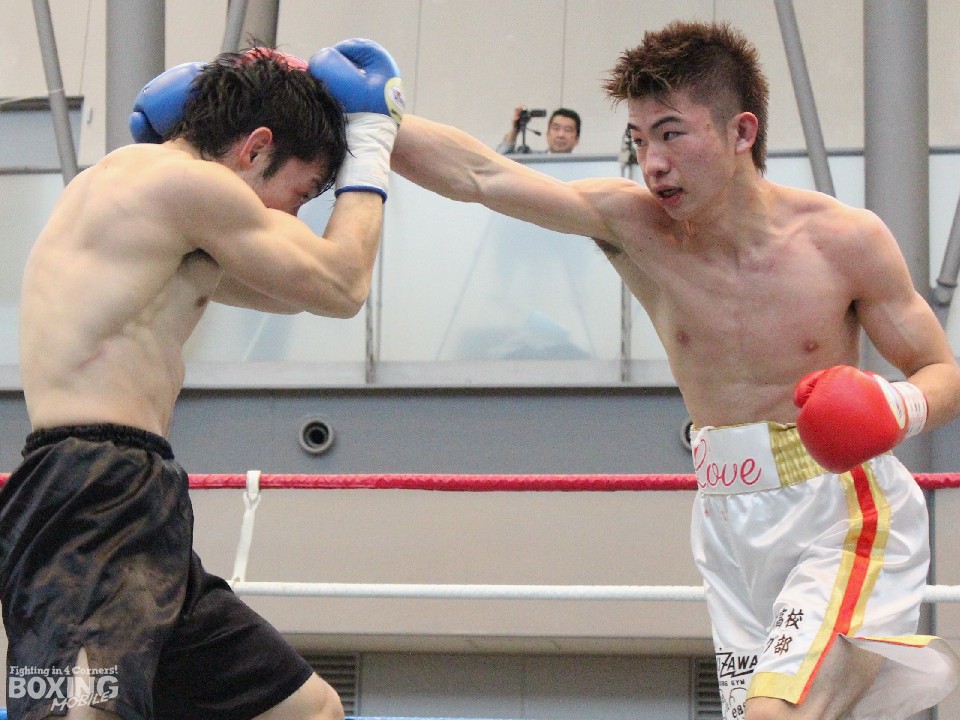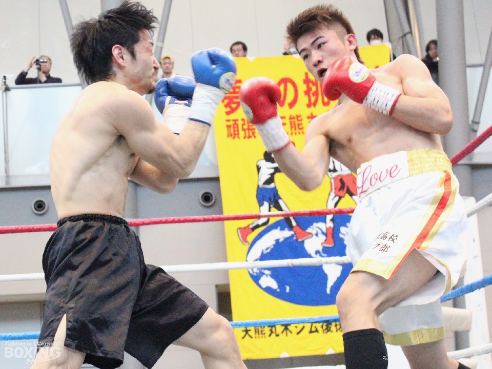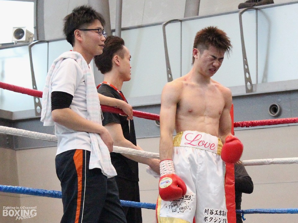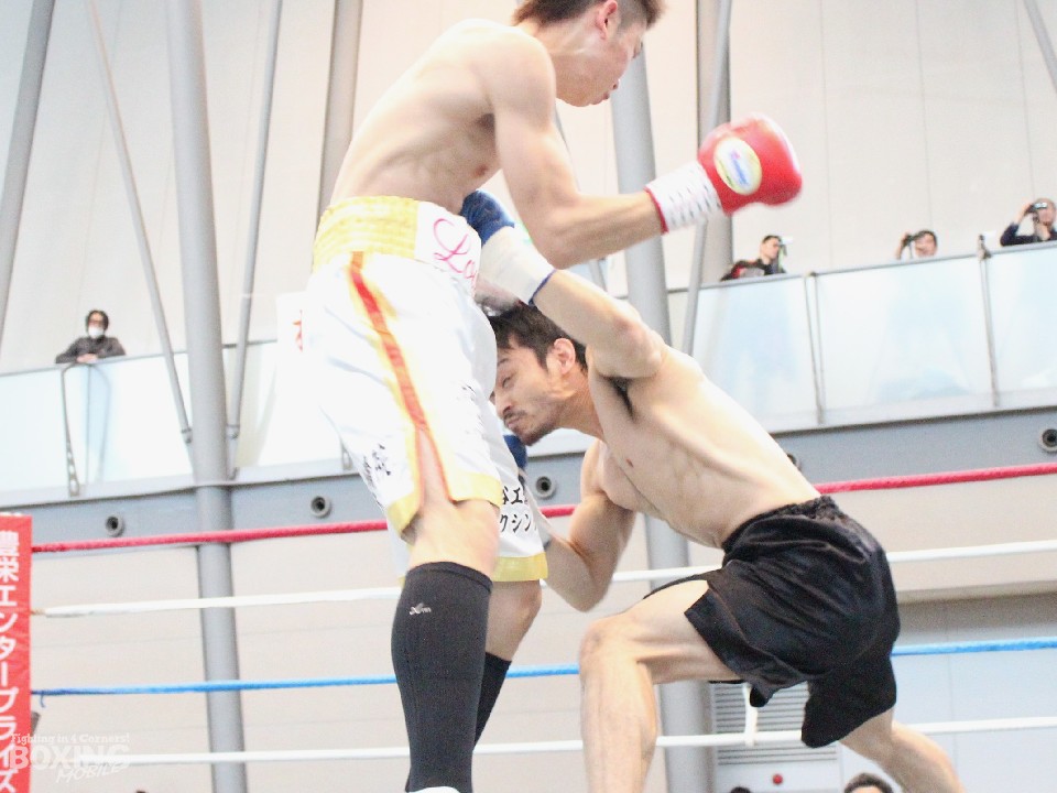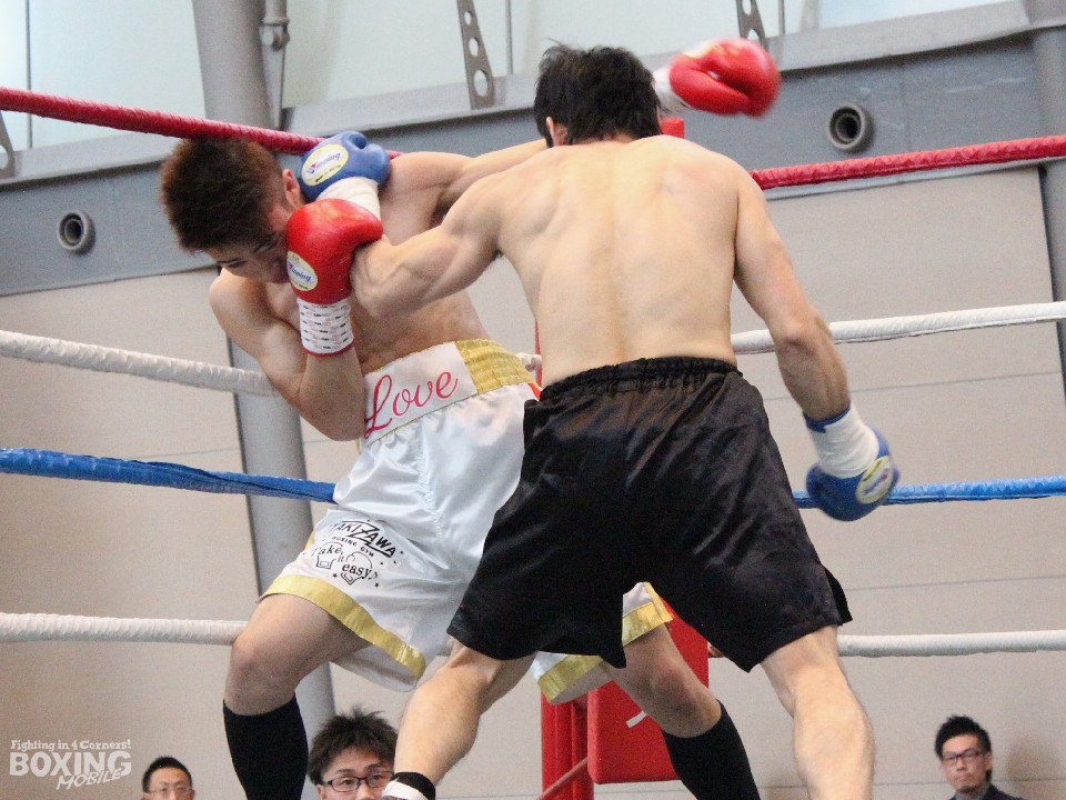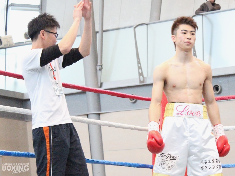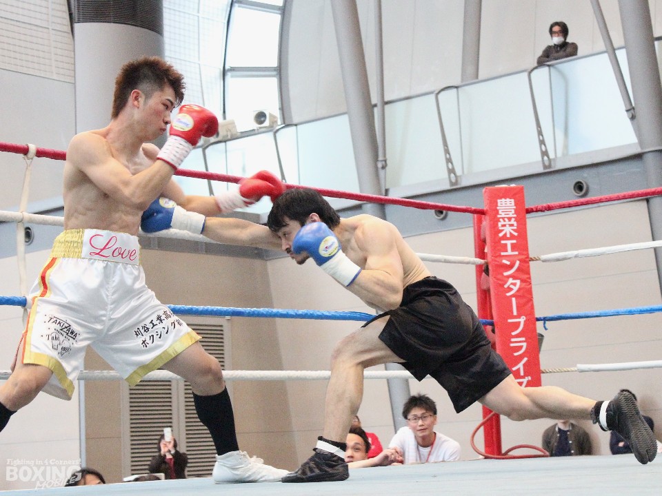 試合:札幌から参戦の佐藤が果敢に前に出て左右フックで襲い掛かるのに対し、デビュー戦の高畠は落ち着いてジャブから左ボディをヒット。さらに右アッパーで迎え撃ち顔を弾いた。接近戦を仕掛けたい佐藤だが距離が合わずクリーンヒットを奪うことができず、高畠のワンツーを浴びた。3回、佐藤は密着した状態から左ショートアッパー、左フックを決めて手数の減った高畠を攻め立てる。4回、高畠は相手のしつこい前進にやりにくさを感じながらも、離れ際にワンツーを好打し見栄えの良さをアピールした。採点は割れたが高畠に軍配が上がった。