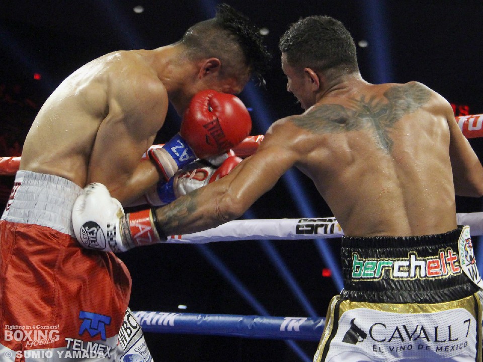 試合:因縁のメキシカン対決は初回、フットワークと軽い連打のベルチェルに圧力をかけていくバルガス。打ち分けの上手いベルチェルは強弱をつけて上下に打ち分けをみせ、中盤に少しずつバルガスにダメージを与えていった。ベルチェルが左フックで顔面、ボディへとコンビネーションを放ちペースを掴んで6回が終了すると、バルガスのコーナーから棄権の申し出があり試合終了。ベルチェルが6回終了時TKO勝利で5度目の防衛に成功した。試合後のインタビューで王座統一戦を望み、伊藤雅雪(伴流)vsジャメル・ヘリング(米国)の勝者との対戦を呼びかけたベルチェルの戦績は37戦36勝(32KO)1敗。約2年4ヶ月ぶりの再戦で雪辱ならなかったバルガスは29戦25勝(18KO)2敗2分となった。