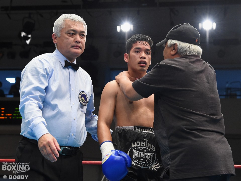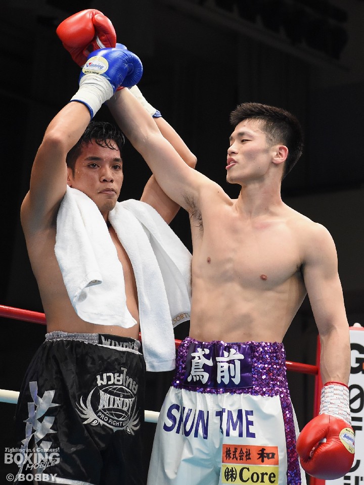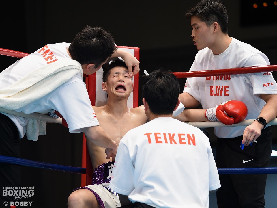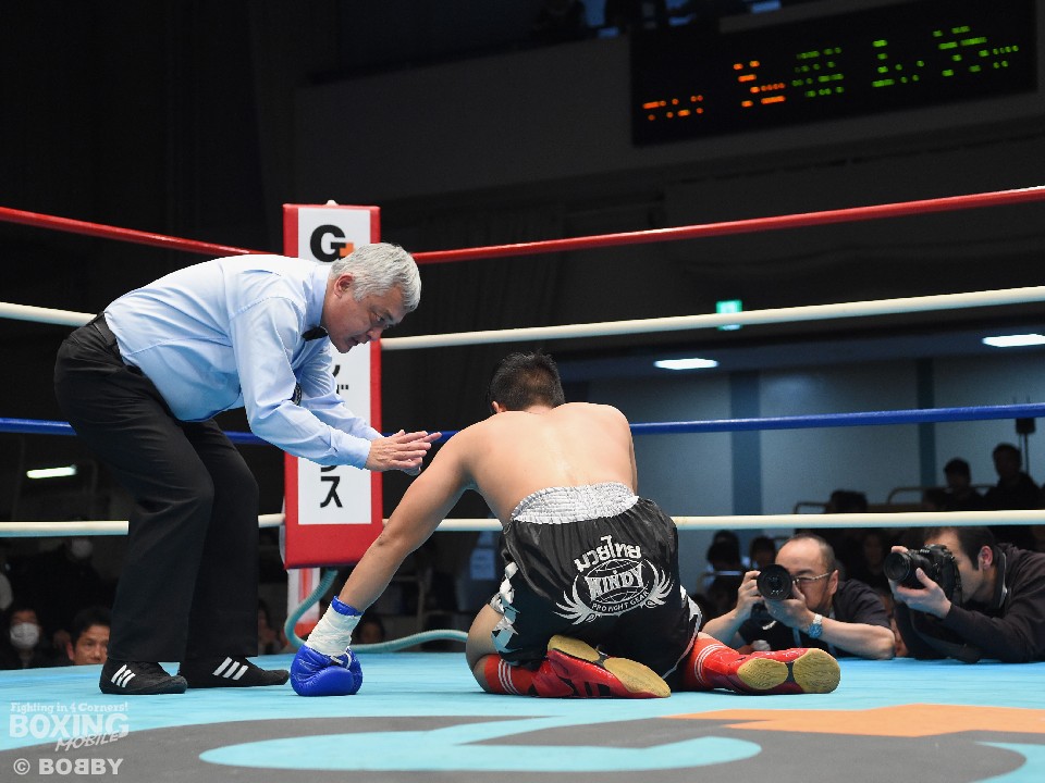 試合:9ヶ月ぶりのリングに立った中村は初回、3勝(3KO)2敗のコーシンクランの出鼻を速いジャブで止め、体が温まり始めた2分過ぎにジャブ、ワンツーをヒット。ペースの上がらないコーシンクランも体を大きく振ってはプレスをかけ、中村の打ち終わりに右の強打を狙ったが、2回以降も中村が的確な左ジャブで足を止め、要所で右ストレートを打ち込んだ。そのたびに思い切って前に出たコーシンクランだが、3回序盤に左を合わされダウン。ここは立ち上がり前に出たが、右ボディから左に繋げられると再び倒れ、今度はカウント中にセコンドからタオルが投入された。