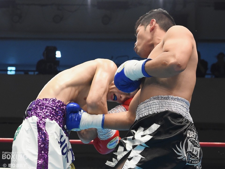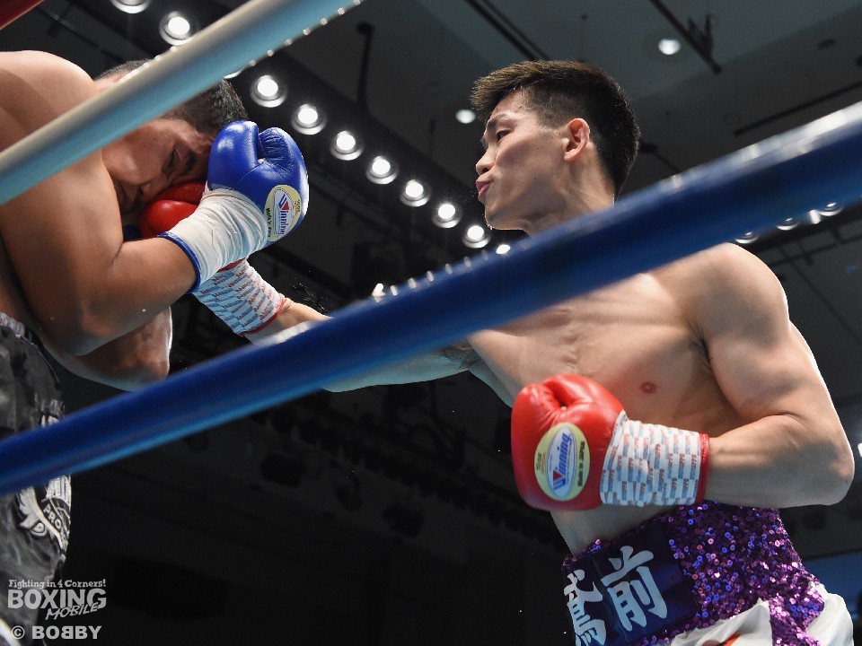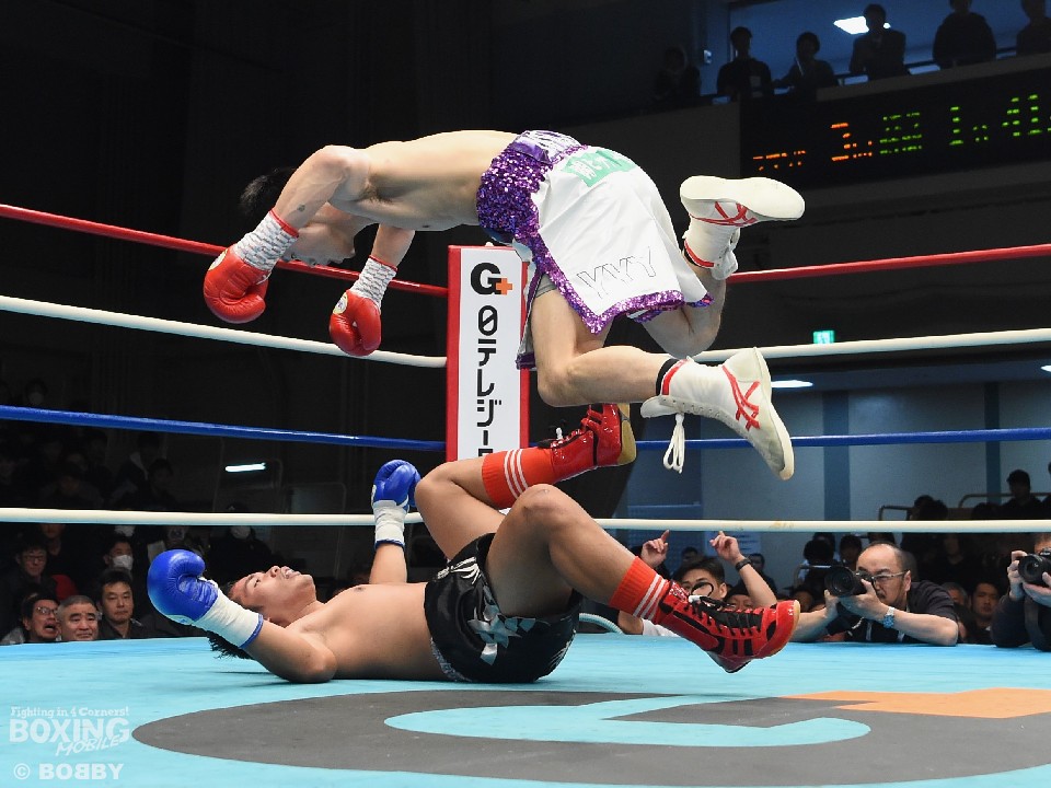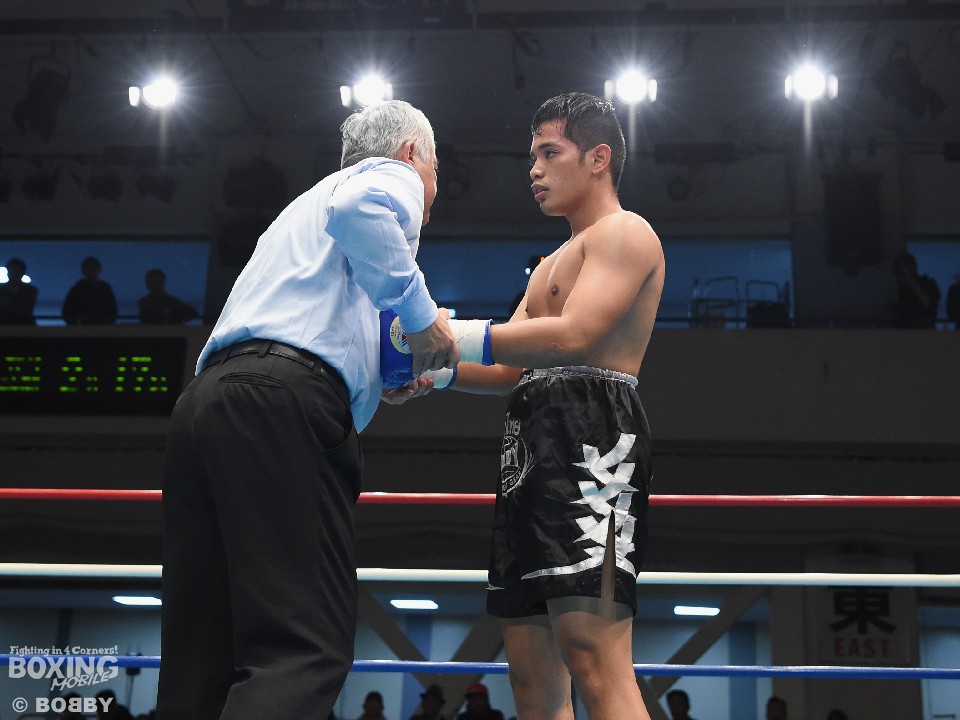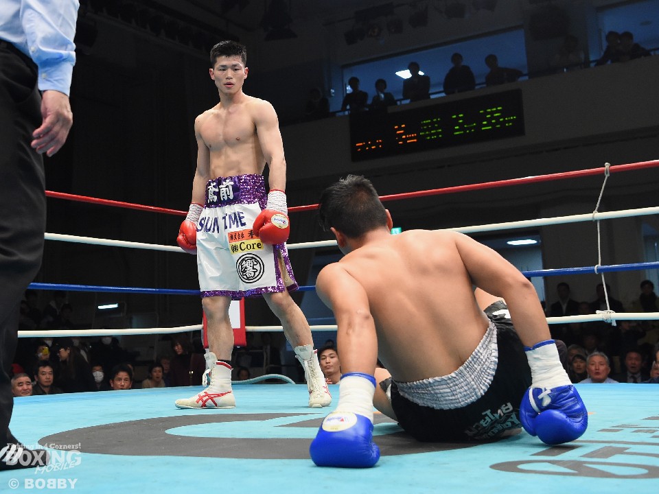 試合:9ヶ月ぶりのリングに立った中村は初回、3勝(3KO)2敗のコーシンクランの出鼻を速いジャブで止め、体が温まり始めた2分過ぎにジャブ、ワンツーをヒット。ペースの上がらないコーシンクランも体を大きく振ってはプレスをかけ、中村の打ち終わりに右の強打を狙ったが、2回以降も中村が的確な左ジャブで足を止め、要所で右ストレートを打ち込んだ。そのたびに思い切って前に出たコーシンクランだが、3回序盤に左を合わされダウン。ここは立ち上がり前に出たが、右ボディから左に繋げられると再び倒れ、今度はカウント中にセコンドからタオルが投入された。