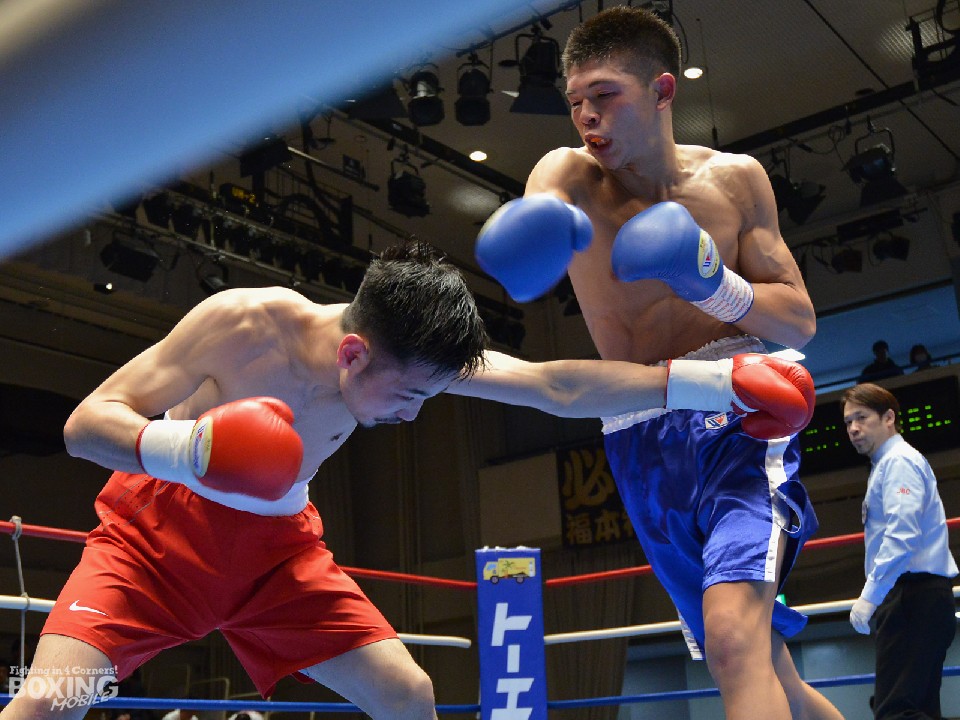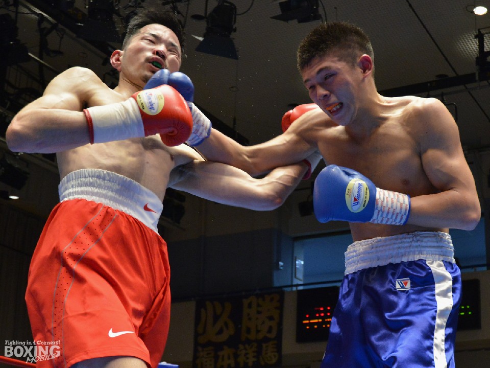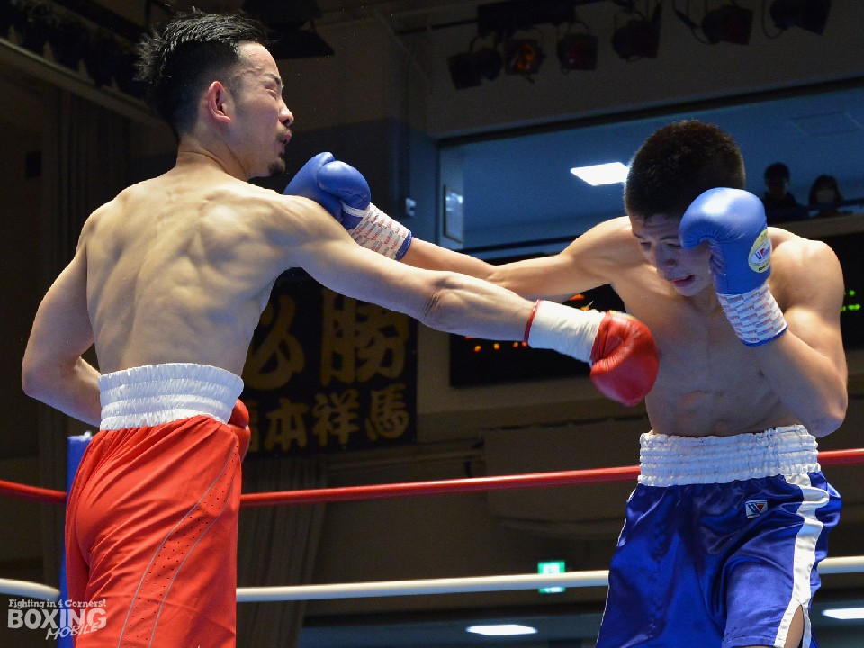 試合:中塚がジャブ、ワンツーで積極的な攻撃を仕掛けるが、竹内も負けじとボディに的を絞り対抗。被弾した中塚だがラウンド終盤にワンツーでグラつかせると連打で攻勢をかけた。2回も中塚の左フックがよく決まるが、竹内も気持ちの強さを見せて手数で応戦の構え。中塚は豊富な手数で攻め立てるが、竹内はプッシュして下がらせると左ボディで動きを止めた。4回、打ち合いは激しさを増し中塚はワンツーで顔を弾くが、打たれ強い竹内はしつこく前進して手数を増やした。ジャッジ1者はドローとしたが2者が竹内を支持し接戦を制した。