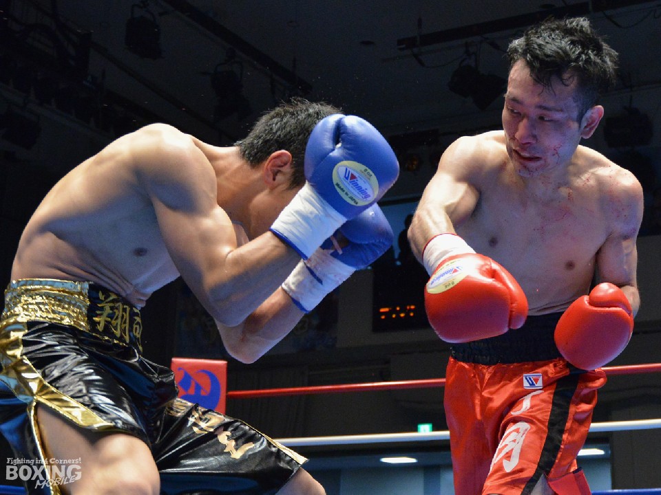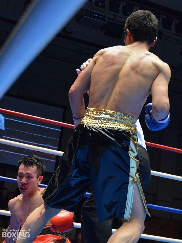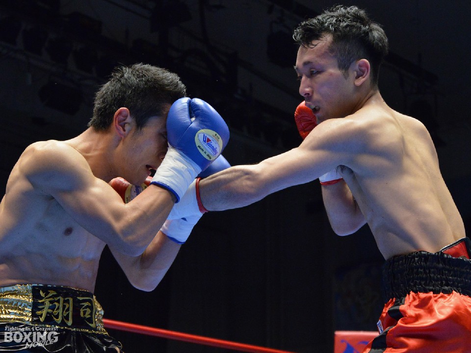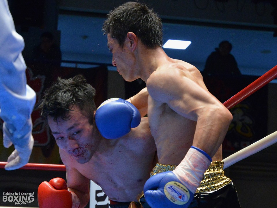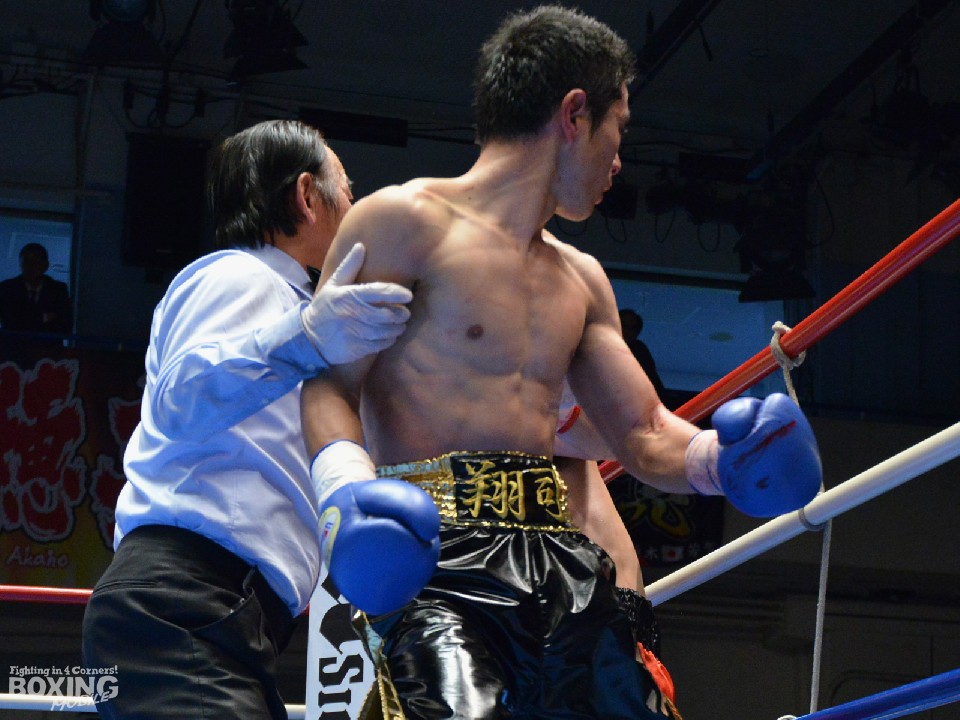 試合:松本が一瞬の飛び込みからワンツーをヒット。対する丹羽はジリジリと距離を詰めて単発の右をコツコツ当てて応戦した。2回、松本は勢いよく右を打ち込むが、これをブロックした丹羽は打ち終わりに右ストレートをねじ込み反撃。3回、丹羽は鼻血を流しながら左を軸に攻めるが、ラウンド終盤にワンツーから連打を浴びて失速した。続く4回、チャンスと見た松本は距離を詰めて畳みかけるとダメージの重さを見たレフェリーが割って入った。