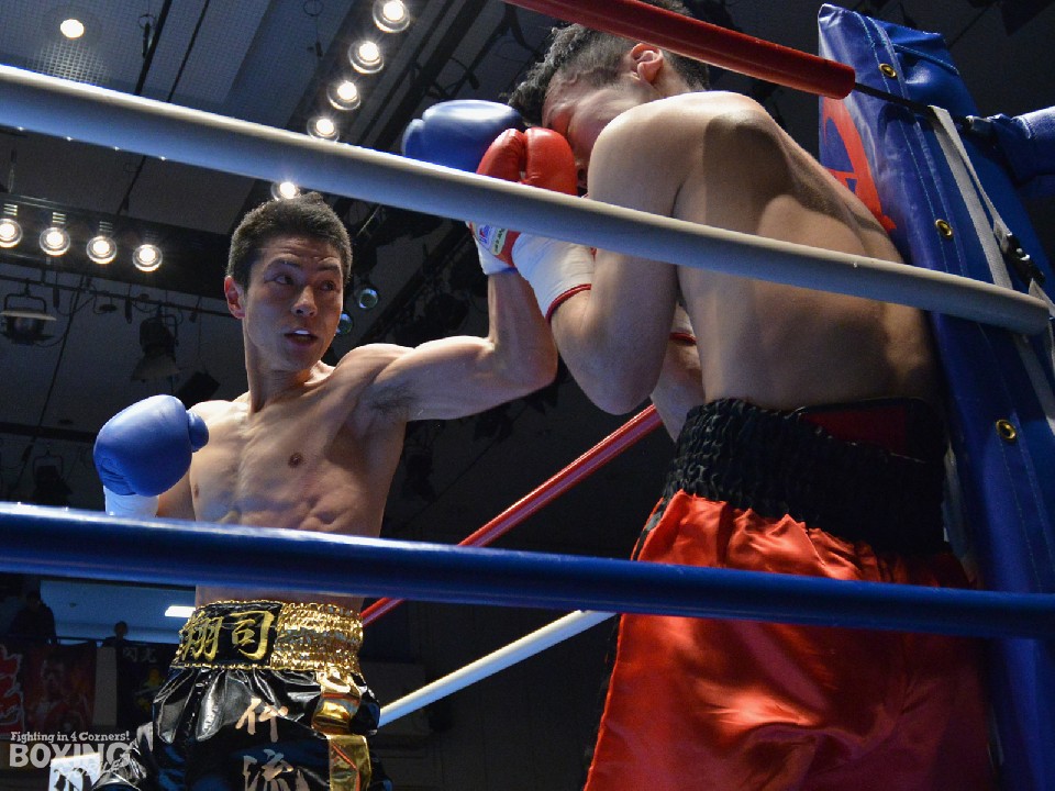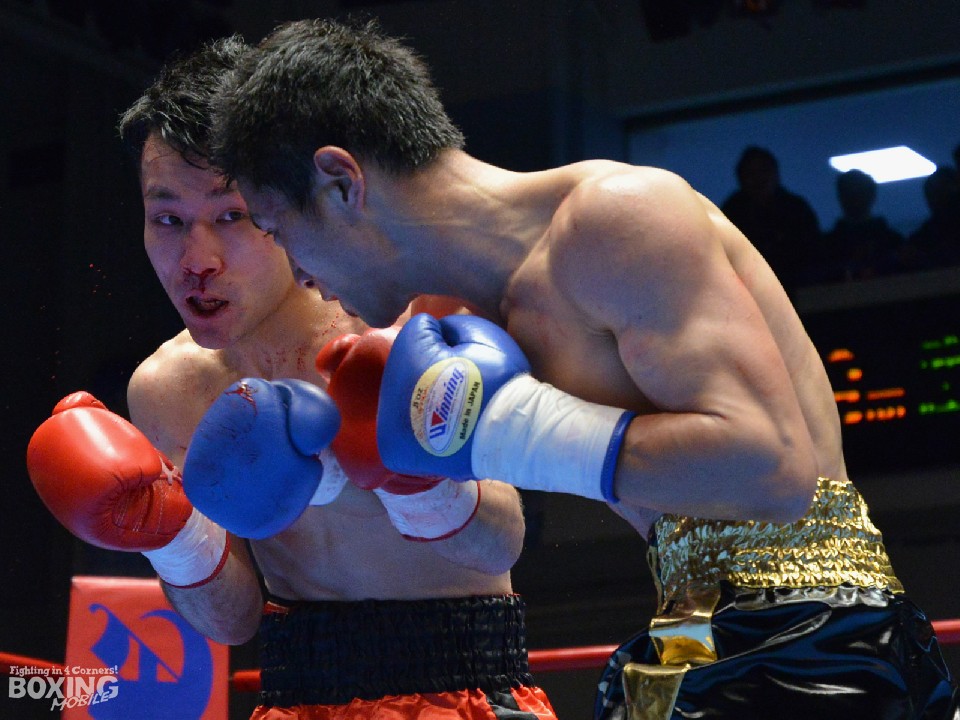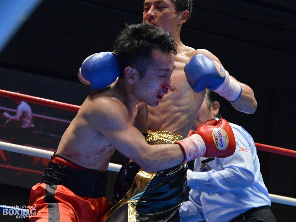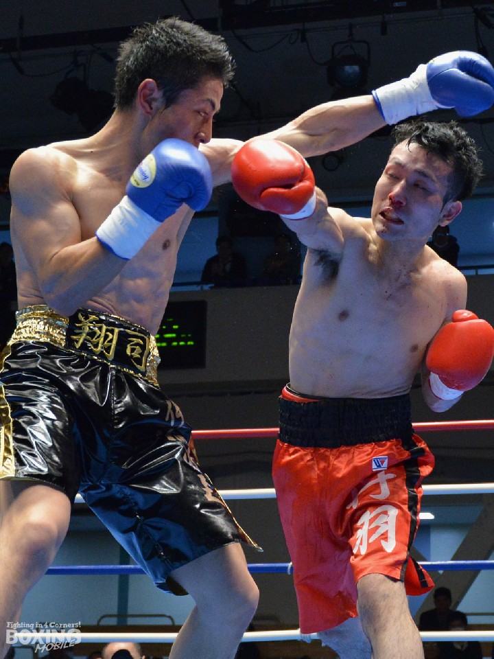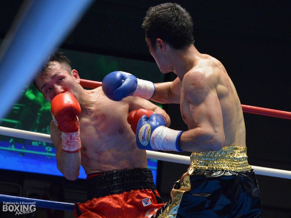 試合:松本が一瞬の飛び込みからワンツーをヒット。対する丹羽はジリジリと距離を詰めて単発の右をコツコツ当てて応戦した。2回、松本は勢いよく右を打ち込むが、これをブロックした丹羽は打ち終わりに右ストレートをねじ込み反撃。3回、丹羽は鼻血を流しながら左を軸に攻めるが、ラウンド終盤にワンツーから連打を浴びて失速した。続く4回、チャンスと見た松本は距離を詰めて畳みかけるとダメージの重さを見たレフェリーが割って入った。