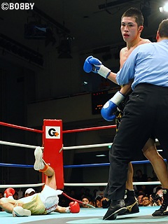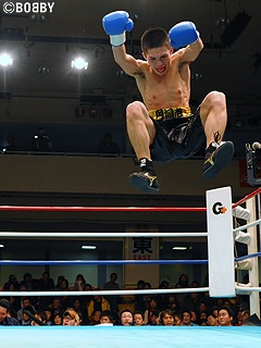 試合:序盤、サウスポー殿村がジャブから右フック・右ボディで攻め込むと、金城も右ストレート・ワンツーで返す打ち合いに。右ボディをヒットさせ接近戦を仕掛けたい殿村。だが、体格で上回る金城がミドルレンジからのワンツーをヒットさせ、殿村の出足を止める。4R、金城がワンツーを軸に仕掛けようとしたその時、金城の右ストレートに合わせた殿村の右フックがカウンターで金城のアゴにヒット。金城は崩れ落ちるようにダウン。カウントが続く中、金城は立ち上がれず無念の10カウント。殿村が日本フライ級6位・金城を衝撃KOで降し、日本ランク入りが確実となった。