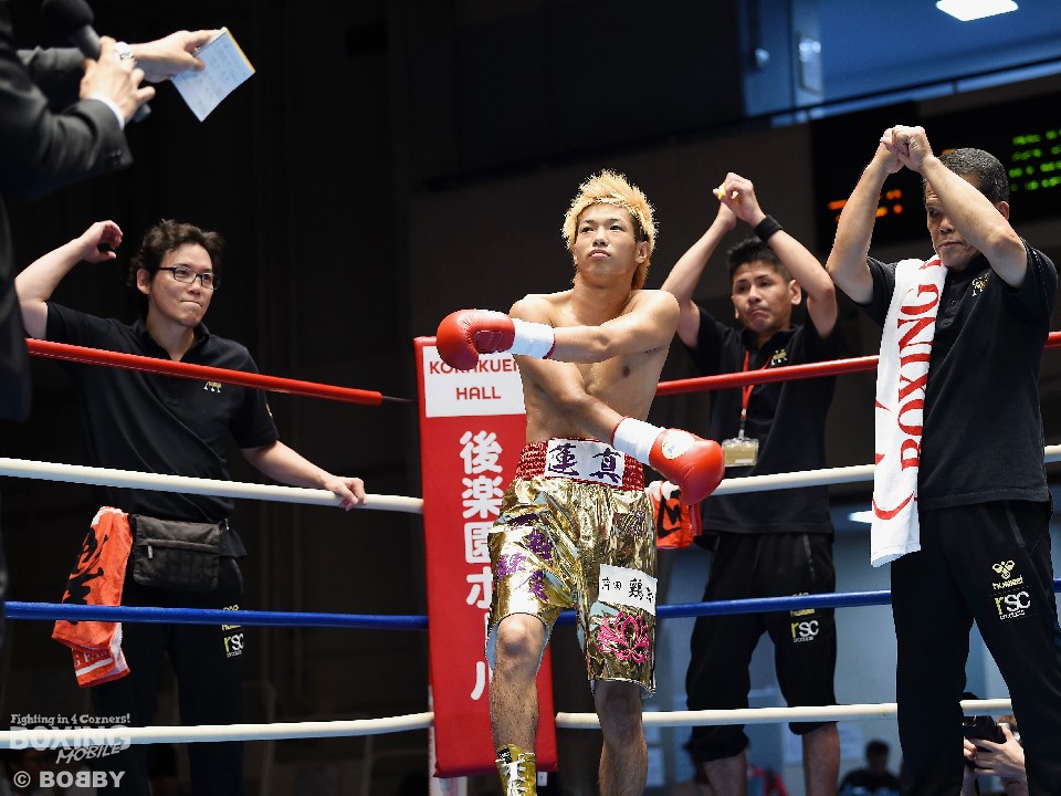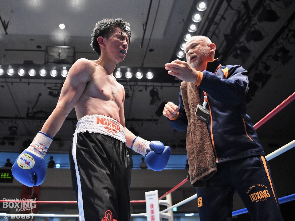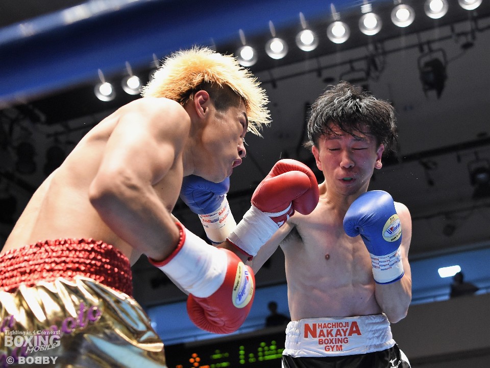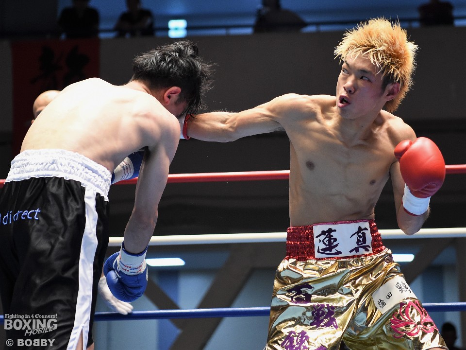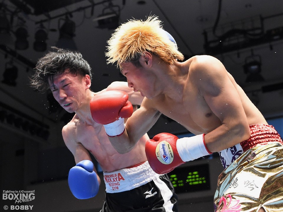 試合:サウスポーの山本がフットワークを活かし、距離を潰してボディを叩く初鹿を右フック、左ストレートで迎え撃ちスタート。山本も好戦的に打ち合いバッティングが目立ったが、右フックで上手く回し、序盤の主導権を握った。2回、2度のドクターチェック後、両者のペースはさらに上がるが、故意に頭を当てにいったとして山本に減点1。この回、初鹿はチャンスとばかりにアタックし、右クロスを好打。対し、山本も左の強打を返すが、どうにも頭が前に出てしまい、続く3回もバッティングで減点を告げられた。その後も山本のバッティングは直らず、ヒットでは上回るも、動きが鈍り左フックでダウン。カウント中にタオルが投入された。