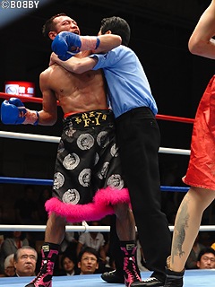 試合:序盤から激しい打ち合い。上野のワンツーに対しドラゴンは手数で応戦し左フックをヒットさせ先制。互いに引かない打撃戦となり、ドラゴンが左フックを軸に仕掛けるが、上野のワンツーにドラゴンの左目上がカット。4Rの打ち合いの中、上野がワンツーから左フック・右ストレートをクリーンヒットさせるとドラゴンはダウン。カウント8で立ち上がるドラゴンだが、上野が一気に畳み掛けると堪らずレフェリーが試合を止めた。