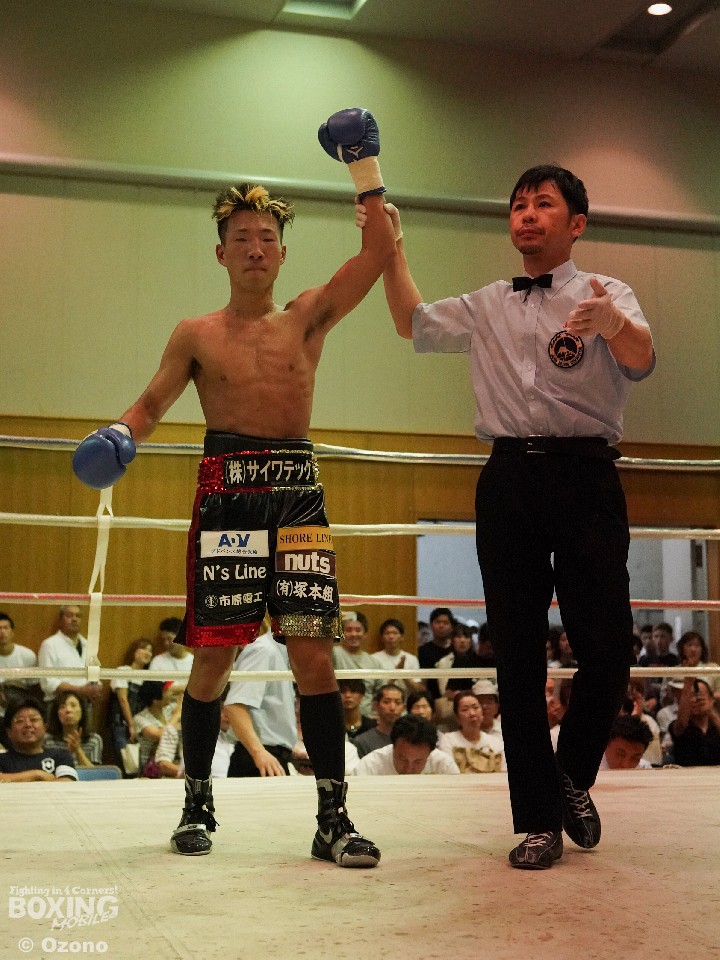 試合:中間距離で距離の探り合いからはじまった試合は、2回にサウスポー森がサークリングしながらワンツーを打ち込み、中澤が左フックで対抗。一進一退の攻防を繰り広げた。3回、森は距離をキープしながら相手に的を絞らせず試合を組み立てた。ヒット&アウェーが光った森に軍配が上がった。