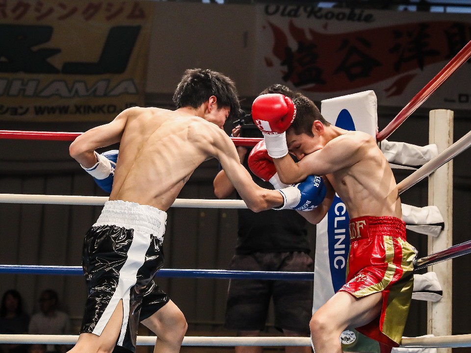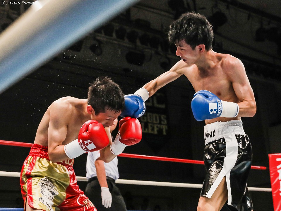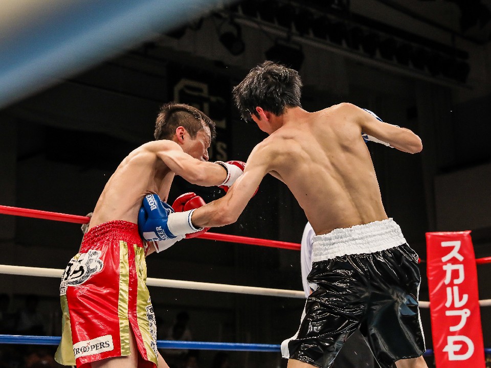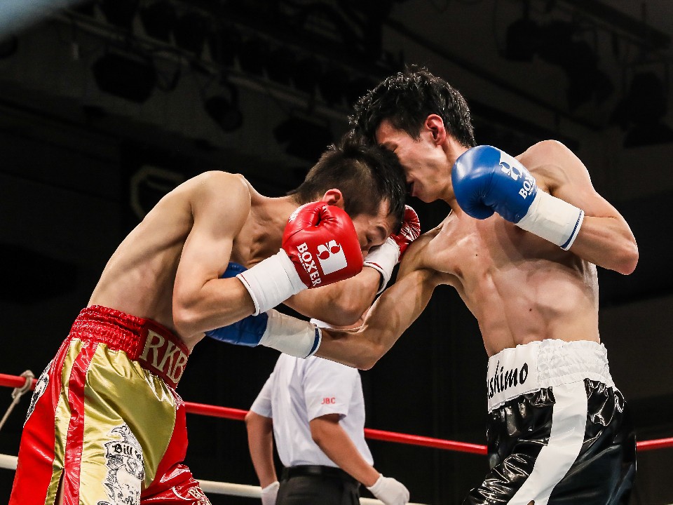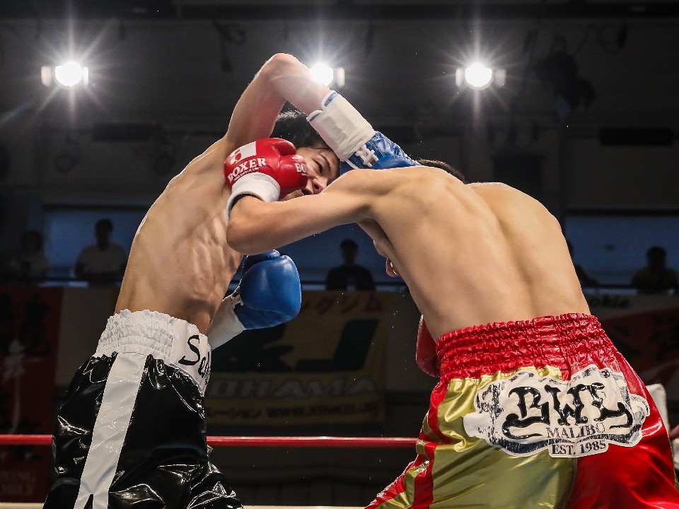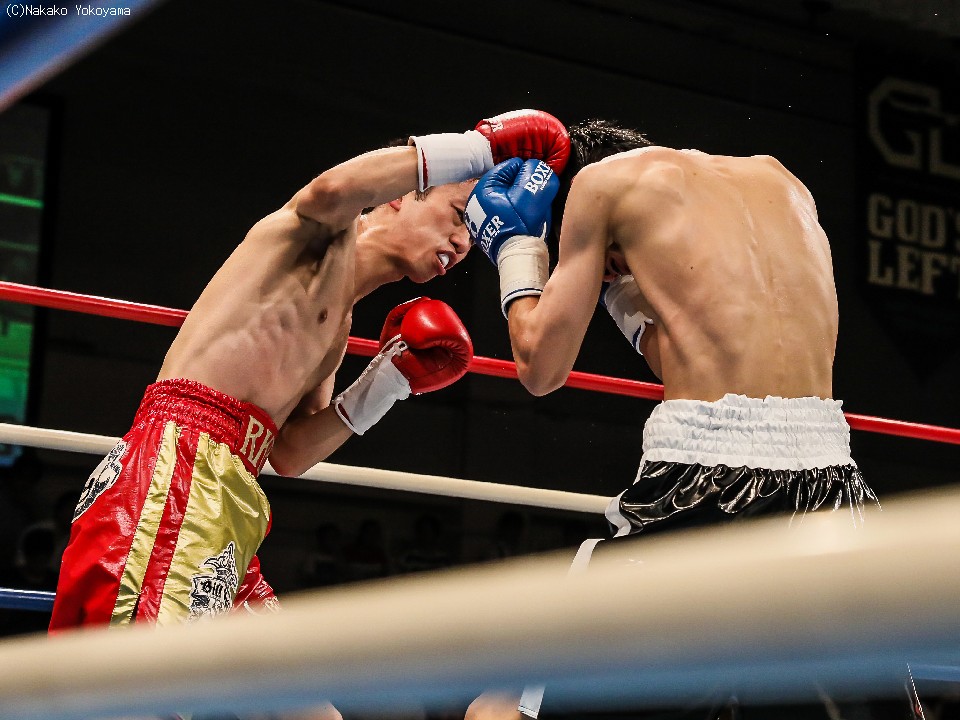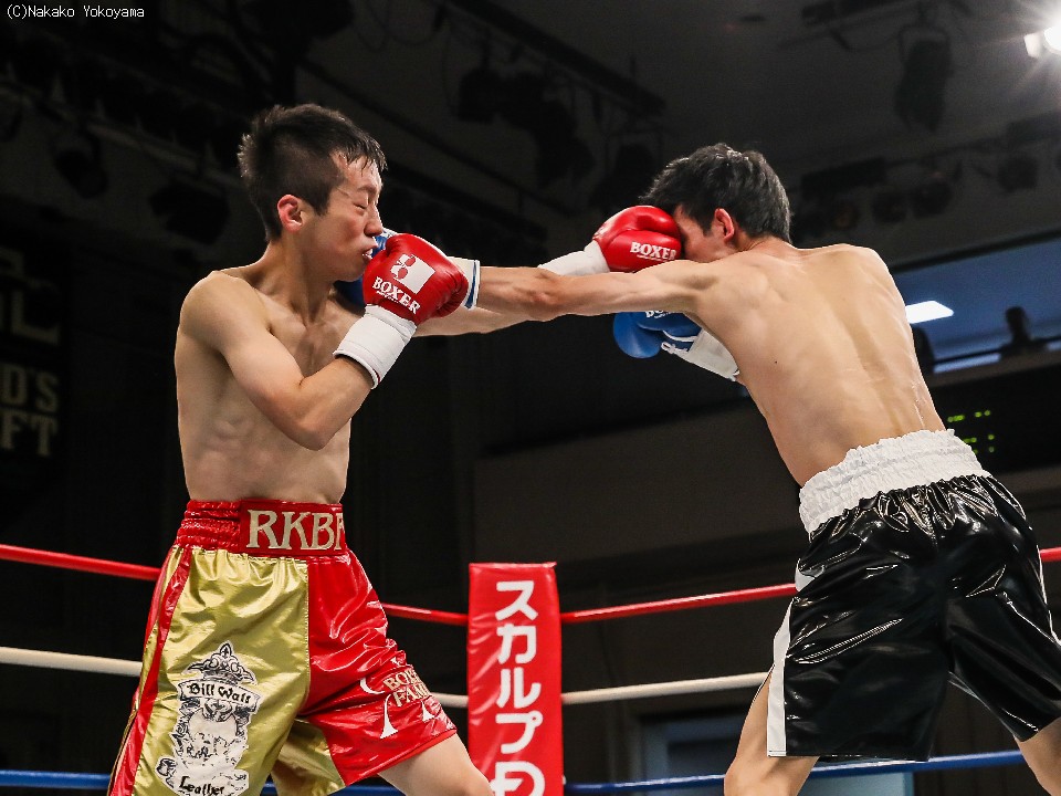 試合:ワンツーでプレスをかける瀬下だが、デビュー戦の青山に打ち終わりを狙われるとズルズルと後退。勢いづく青山はこのまま押し込みたかったが、瀬下に左ボディから打ち分けられ打撃戦に発展。2回も瀬下がワンツー、ボディで距離を潰し、青山が下がりながら左右フックを返す展開が続いたが、この回終盤に青山が右を好打しポイントをアピールした。逆に3回は瀬下が徹底した上下の打ち分けで上回り、最終4回は右ボディからストレートを効かせたが、青山も最後まで食らいつき互角のファイトでゴング。ジャッジ1者はドローとしたが、2者が瀬下を支持した。