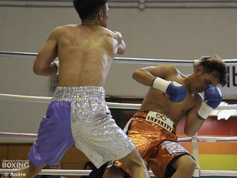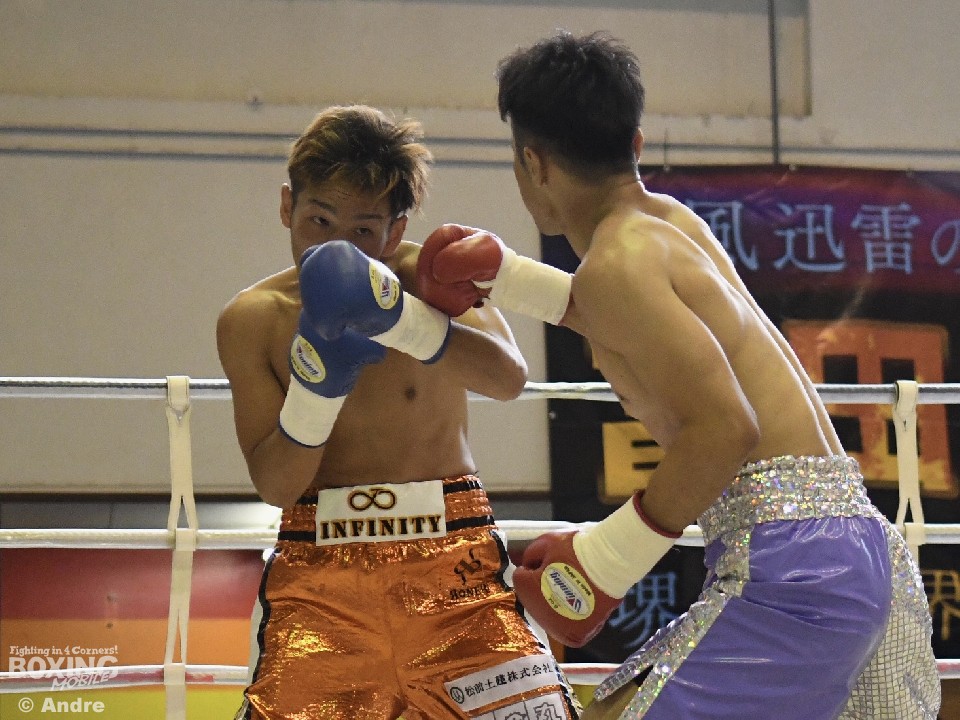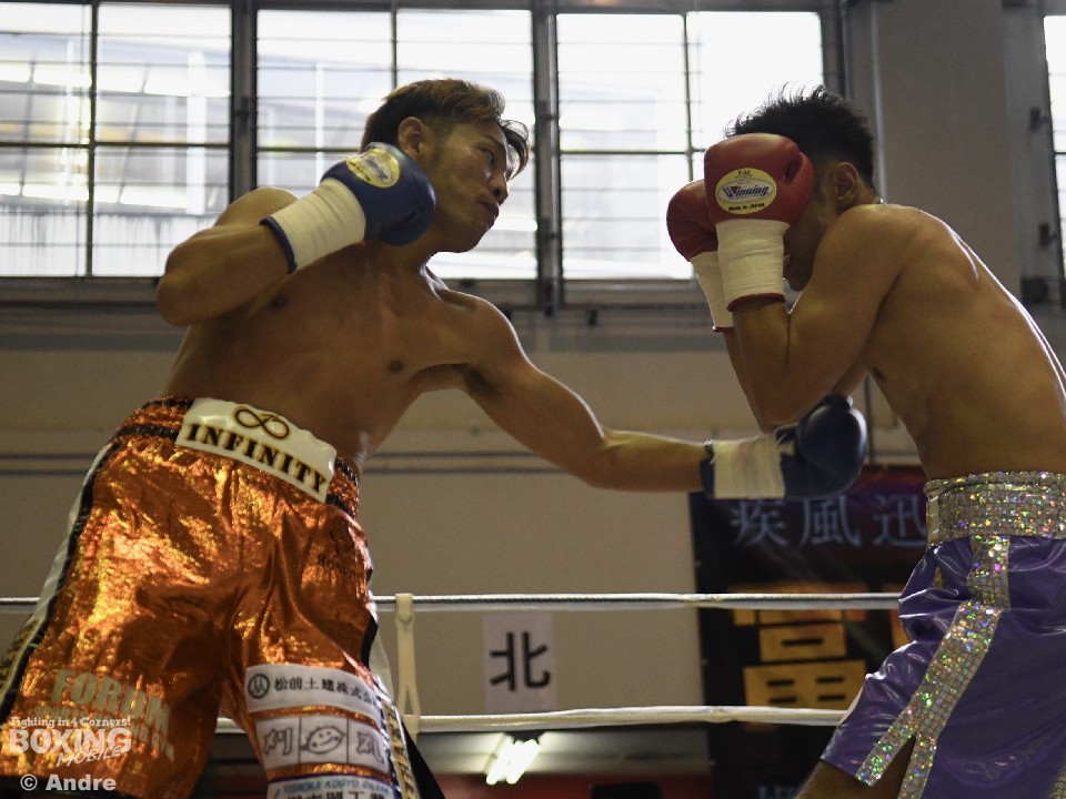 試合:初回から中間距離で激しい打撃戦を繰り広げると、横川がワンツーでガクッと腰を沈めさせ連打で攻勢。一気に勝負を決めるべく連打で襲いかかったが、高須賀の右フックが決まりダウンを演出。波乱を予感させた。2回、横川はフィジカルの強さを活かしロープに押し込むと、連打から左フックをねじ込み倒し返した。3回、高須賀は的確なワンツーで相手の左目上を腫れさせるが、横川はダイナミックな右フックでガードごとふっ飛ばし派手な打ち合い。会場を大いに盛り上げた。4回、横川は右フックを強振すると圧力をかけて攻勢。高須賀はガードを固めて右ショートアッパーを返し反撃の機会を伺った。どっちが倒れてもおかしくない壮絶な打撃戦が続いたが、6回に高須賀が左フックでグラつかせると右をフォローしレフェリーストップ!殊勲の勝利を挙げた高須賀が日本ランカー入りを濃厚とした。
