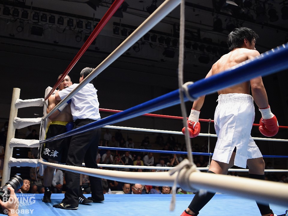 試合:重量感のあるファイター歌津が忙しく体と足を動かしながら踏み込み、左ボディ、右クロスをヒットさせるが、舟津も右ストレートで突き放しては左フック、ボディまで返し冷静に対応した。2回も歌津はスタートダッシュで仕掛け、舟津を打撃戦に引きずり込む。ここで舟津に左フックを効かされ膝を折る場面もあったが、しつこく距離を詰めパンチをまとめた。しかし3回、舟津の左ボディに押され、右を打ち下ろされるピンチが続くとセコンドはタオルを振って棄権を意思表示。舟津が3回TKO勝ちで決勝に進出した。