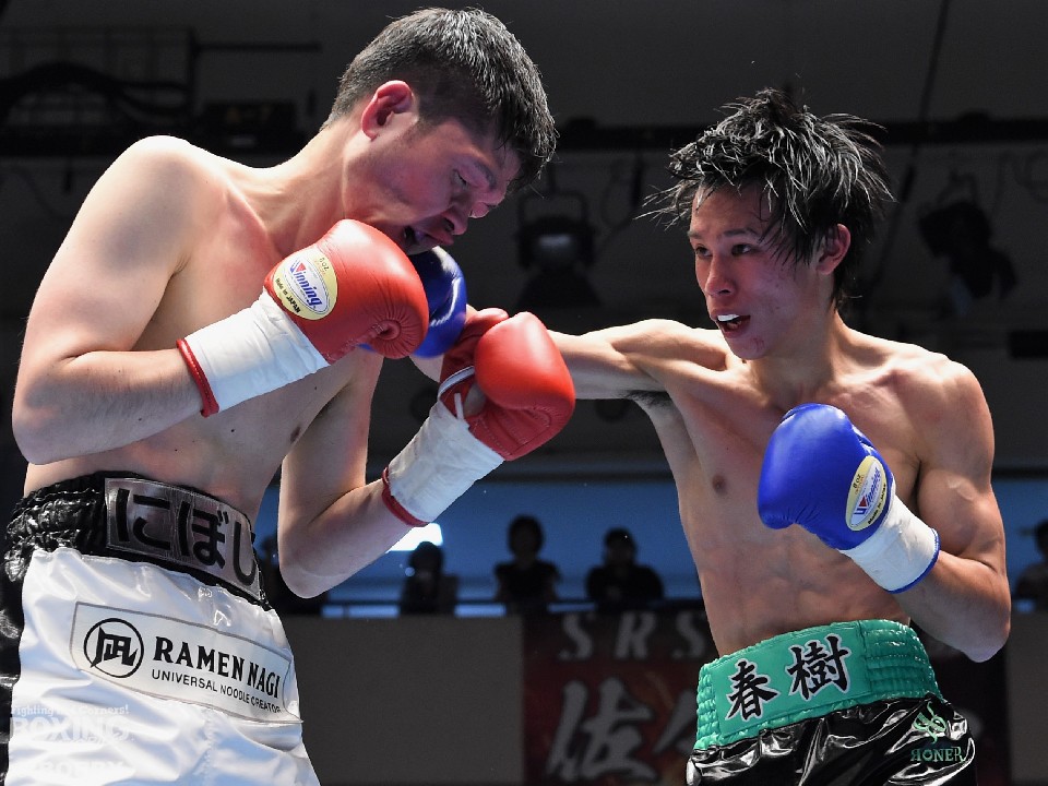 試合:にぼしが一回り歳が離れた20歳の臼井を好戦的に詰め、右クロス、ショートアッパーを打ち込んだが、スピードと距離で上回られると左ボディ、右ストレートの被弾が目立った。にぼしも2回は上下の打ち分けで臼井のスタミナを削るが、離れたとろこで右を効かされ体勢を崩した。3回以降はにぼしが奮闘し、若い臼井とラストまで互角の打撃戦を繰り広げたが、判定は3-0で臼井に軍配が挙がった。