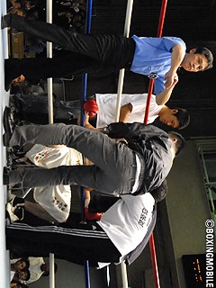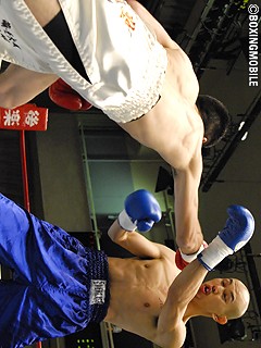 試合:1R、方波見が早くも独特の間合いから右アッパーを打ち込み主導権を奪う。方波見は飛び込みながらのロングワンツーをヒット。すると、五百久が慌てて踏み込んでしまい、方波見のストレート乗りの右ジャブを合わせられダウン。2R以降、五百久は方波見の変則的な動きと長い間合いに苦戦。方波見はロングの右アッパー・左ボディ・左ロングフックをヒットさせポイントを奪う。五百久も強引に懐に入り、右ストレート・ワンツーを打ち込み、方波見の距離を潰そうとするが捌かれてしまう。4R終了間際、方波見が左ストレートからワンツーをクリーンヒットさせると、五百久はダウン寸前に追い込まれるがゴングに救われる。インターバル中、五百久サイドにドクターが呼び込まれる。五百久は方波見のパンチで左目下をカット。続行不能と判断し、五百久サイドは棄権となった。