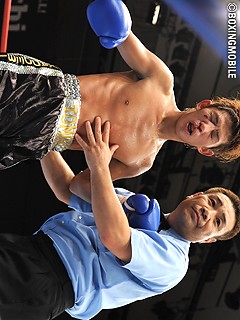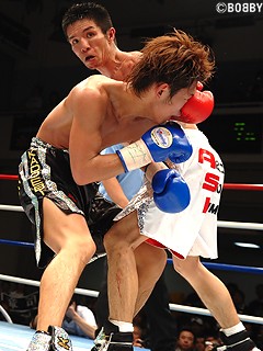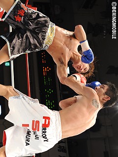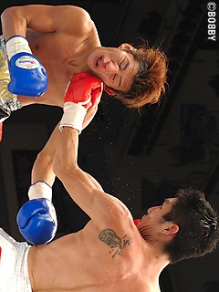 試合:立ち上がり、硬さの残る金沢に木村が左フックを先制させ、一気に主導権を奪う。木村は的確にジャブ・左フックをヒットさせ、自分の距離・間合いを掴み、試合をコントロール。金沢も積極的にワンツー・左フックで距離を詰め、打ち合いに持ち込みたいが、木村は詰めて来る金沢に対しジャブ・左フック・右ストレートをヒットさせ距離を詰めさせず確実にポイントを奪う。中盤以降、金沢は奪われたポイントを取り返すべくパンチを繰り出すが、攻め急いでしまい大降りに。木村は終始、自分のリズム・間合いを崩す事無く、冷静に左フック・右ストレートをヒットさせ試合の主導権を離さない。9R、木村はジャブで距離を測り、飛び込み様の左アッパーをクリーンヒットさせると金沢はニュートラルコーナーで尻餅を着くようにダウン。何とか立ち上がる金沢だが、これまでのダメージからか足元が定まらず10カウントが数えられた。木村が左アッパーで金沢を下し、初防衛をKOで飾った。