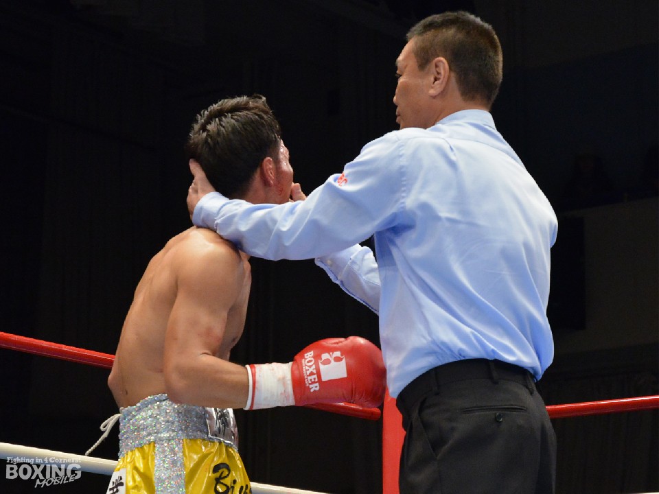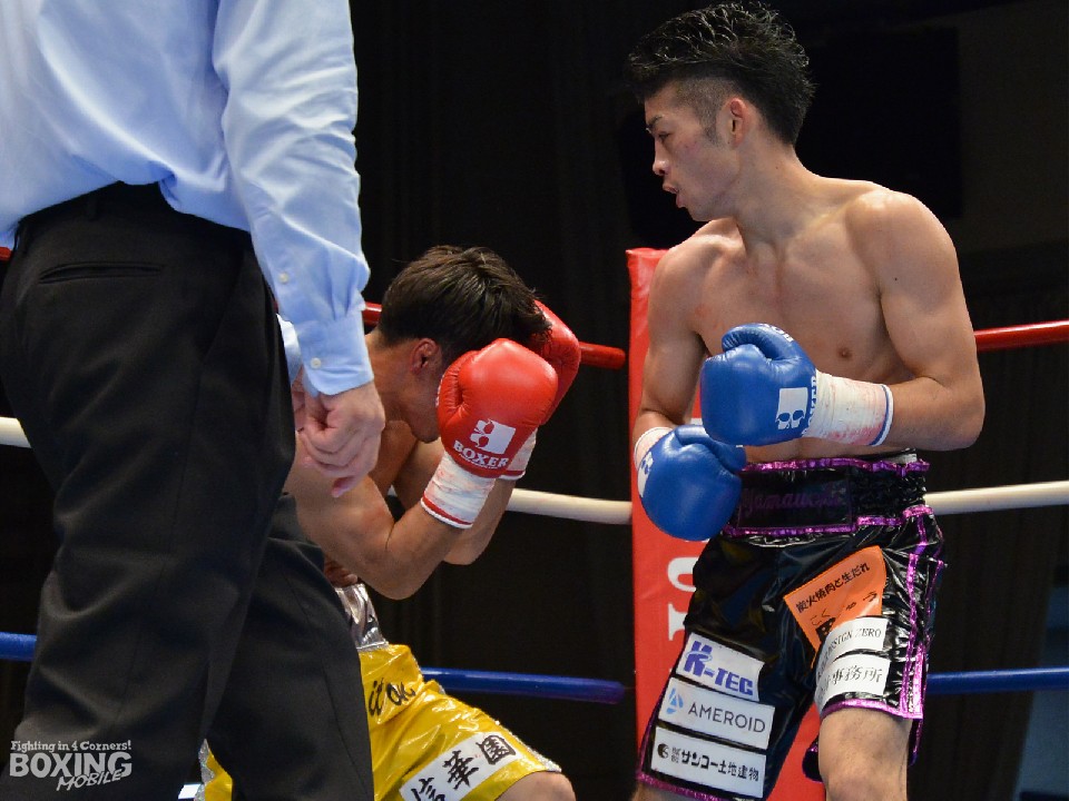 試合:中間距離でジャブの探り合いからスタートしたが、サウスポー山内がワンツーから右ショートを好打し先手を奪った。2回、リズムを掴んだ山内は上下に打ち分けダメージを与えると、左ストレートを決めて先制のダウンを演出。立ち上がった若松はワンツー連打で懸命の反撃を見せた。3回、山内は左ボディアッパーをカウンターで決めて動きを止めると連打で攻勢。一方的な展開となりレフェリーが試合をストップした。3ラウンドで仕留めた山内が賞金15万円をゲットし、日本ランキング入りを濃厚とした。
