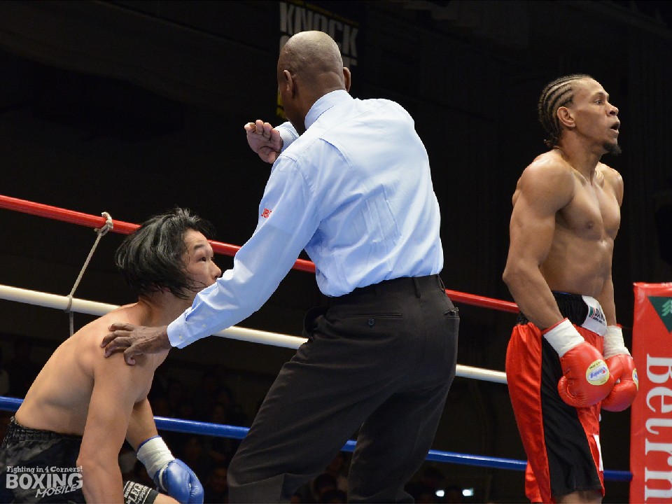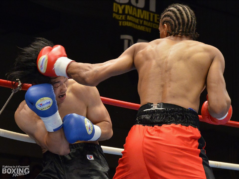 試合:ゴングと同時に宮崎がダッシュして襲いかかるが、ディスティノは冷静に対応するとワンツーを痛打。チャンスと見たディスティノは右フックを叩きつけてダウンを奪った。立ち上がった宮崎は左右フックを振り回すが、ディスティノは落ち着いた試合運びを見せるとロープに詰めて連打を繰り出し攻勢。猛攻に耐えていた宮崎だったが最後はキャンバスに崩れ落ちた。初回KO勝ちしたディスティノが賞金50万円を獲得した。