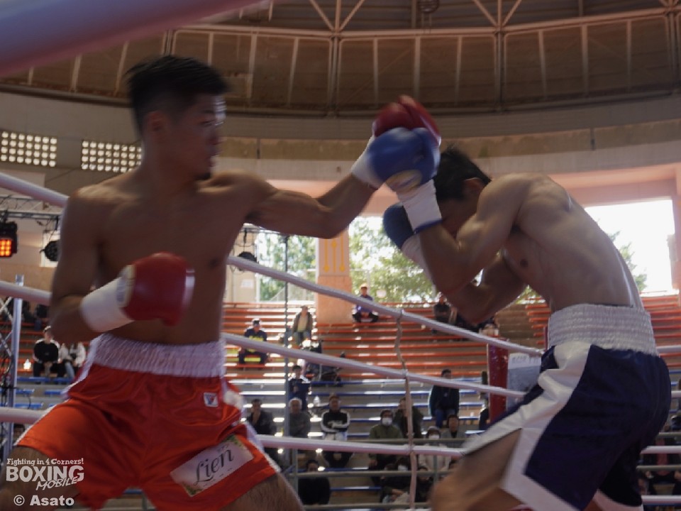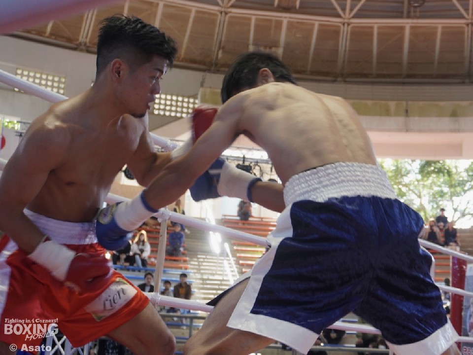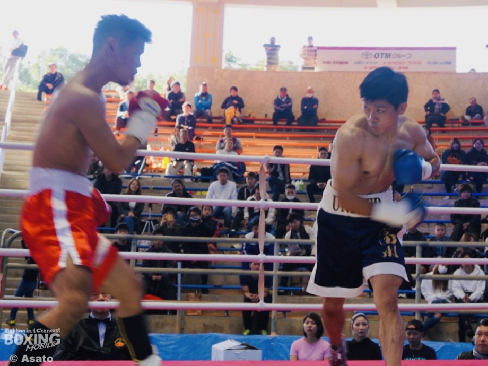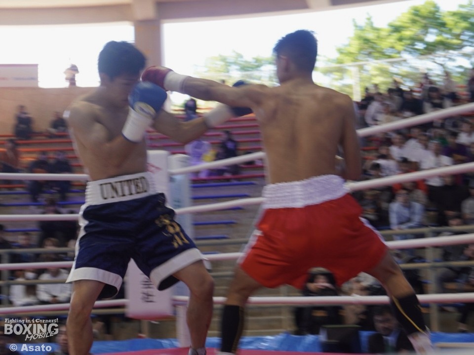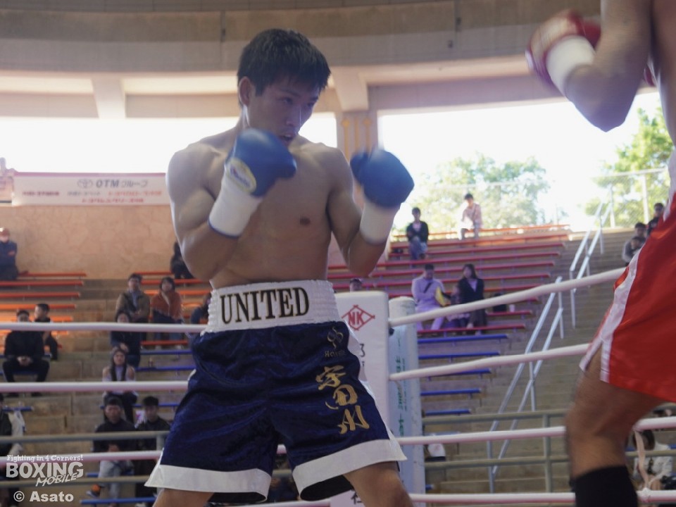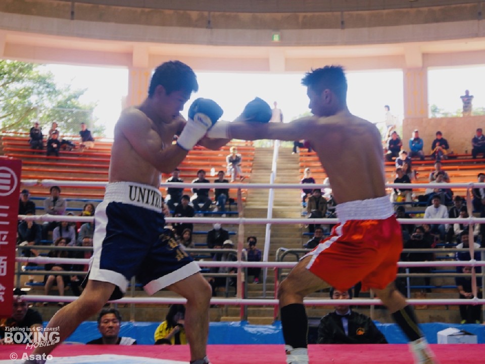 試合:宇田川が積極的に前に出てボディを軸にリズムを作る。対する金城もジャブ、相手の打ち終わりに左を合わせてタイミングを伺う。すると1回終盤、右からの強烈な左ボディでえぐると宇田川はたまらずダウン。ダメージの残る相手に猛攻をかけたがここは仕留めることができなかった。2回、金城はプレスをかけてジャブ、左フックと攻勢をかけた。宇田川も手を出して対抗するがダメージの深さを見てレフェリーが試合を止めた。