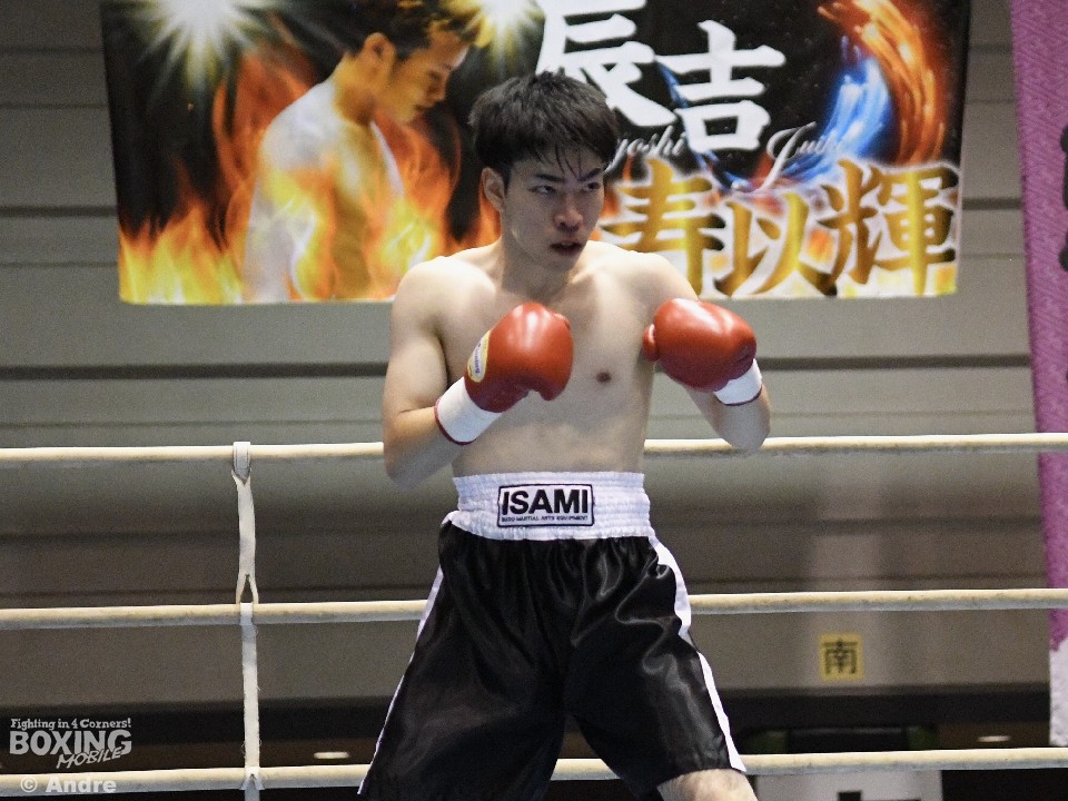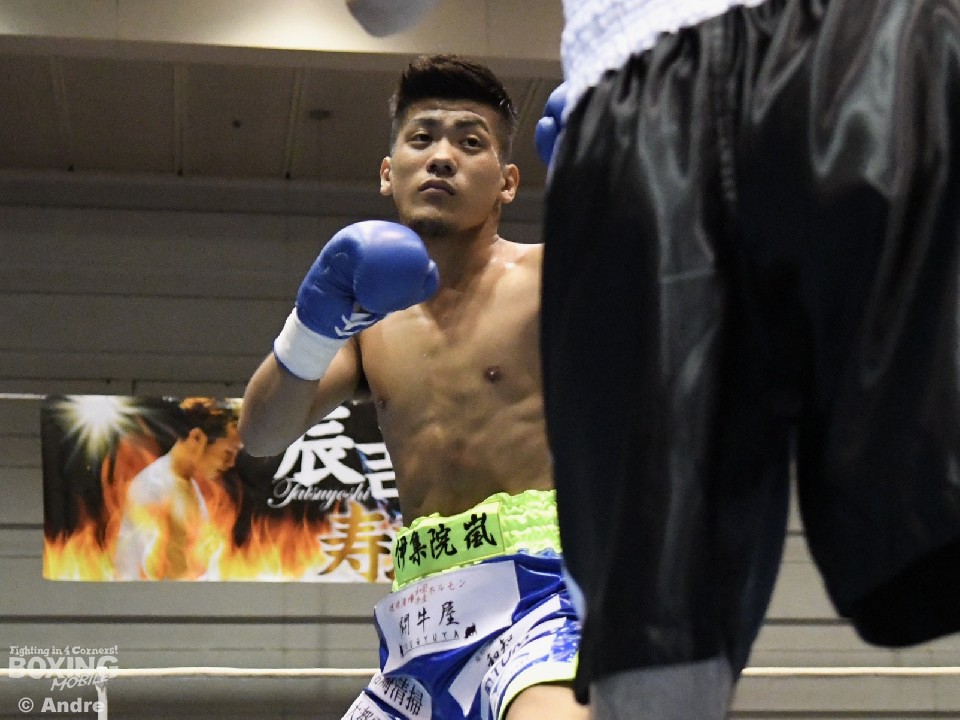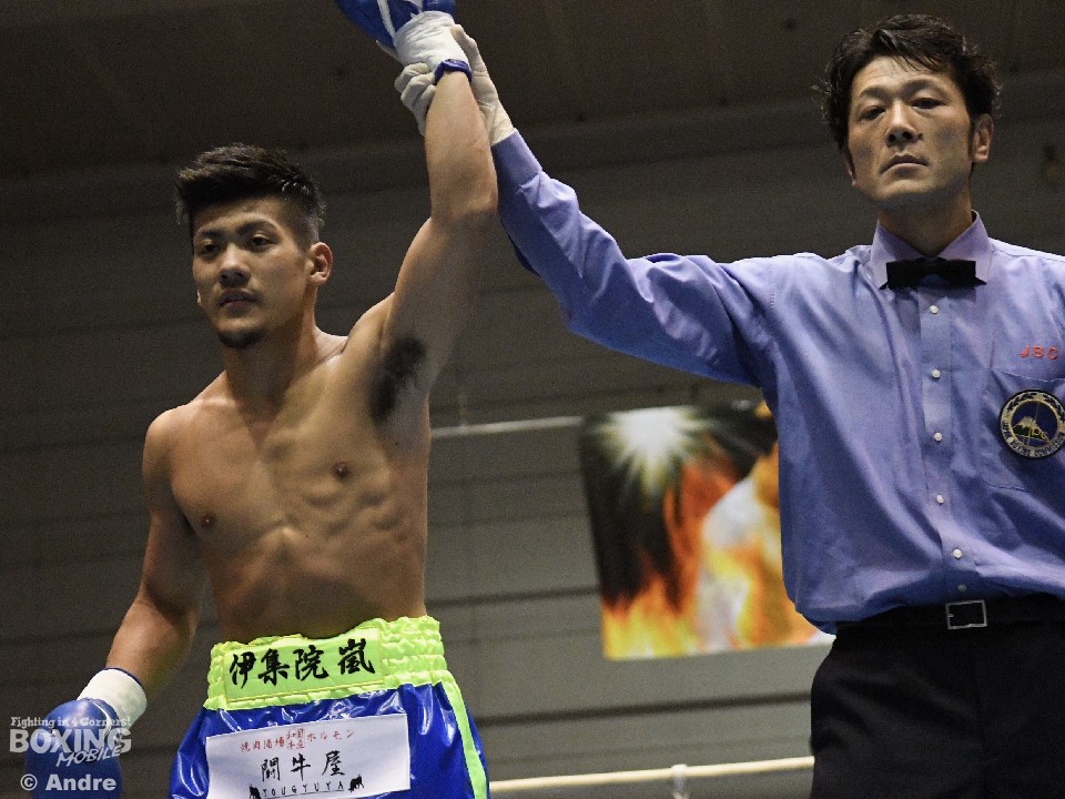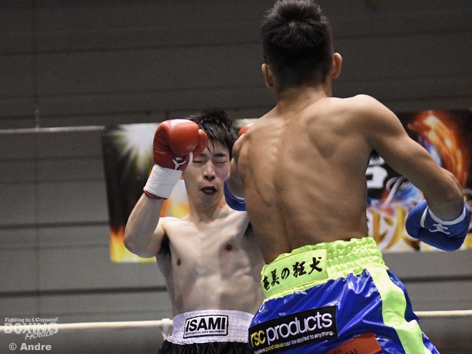 試合:デビュー戦同士の激突。開始から伊集院の左が連続で決まり先制に成功。村山は、後手に回るがワンツーを狙う。すると1ラウンド終盤、伊集院のラッシュで村山は防戦一方となりレフェリーが試合をストップ。