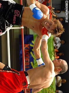 試合:開始と同時に両者積極的に仕掛ける。打ち合いの中、東上が左ボディをヒットさせペースを掴む。秋葉もワンツー・左フックで反撃に打って出るが、東上が左ボディを軸に自身の距離をキープ。ワンツー・左フックをヒットさせポイントを奪う。中盤に入ると、東上はロングレンジから飛び込むように左フックをヒット。5R終了間際、東上がワンツーをヒットさせ一気にラッシュ。秋葉をダウン寸前まで追い詰める。終盤、東上は左ボディをコンスタントにヒットさせワンツーで仕掛ける。秋葉も左フック・ワンツーを返すが、東上が手数・クリーンヒットで上回りポイントアウト。最終8R、KO以外に勝利は奪えない秋葉は距離を詰め打撃戦を挑むと、東上もこれに応える。互いに引かない打撃戦を展開するも試合は判定に。終始、東上が左ボディを軸に試合を組み立て、ワンツー・左フックをヒットさせポイントを奪い、判定3-0で勝利を掴んだ。日本フェザー級3位の秋葉を降した東上は、この勝利で悲願の日本ランキング入りを確実にした。