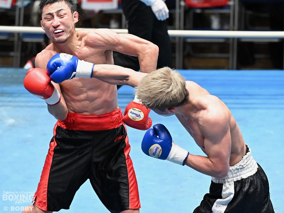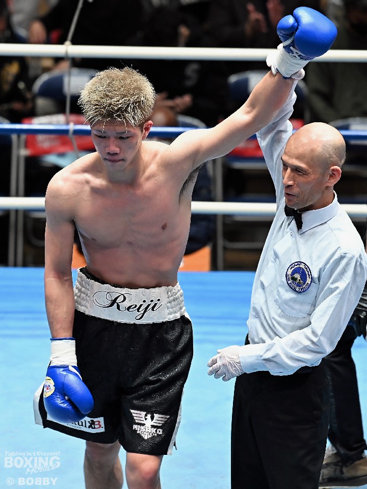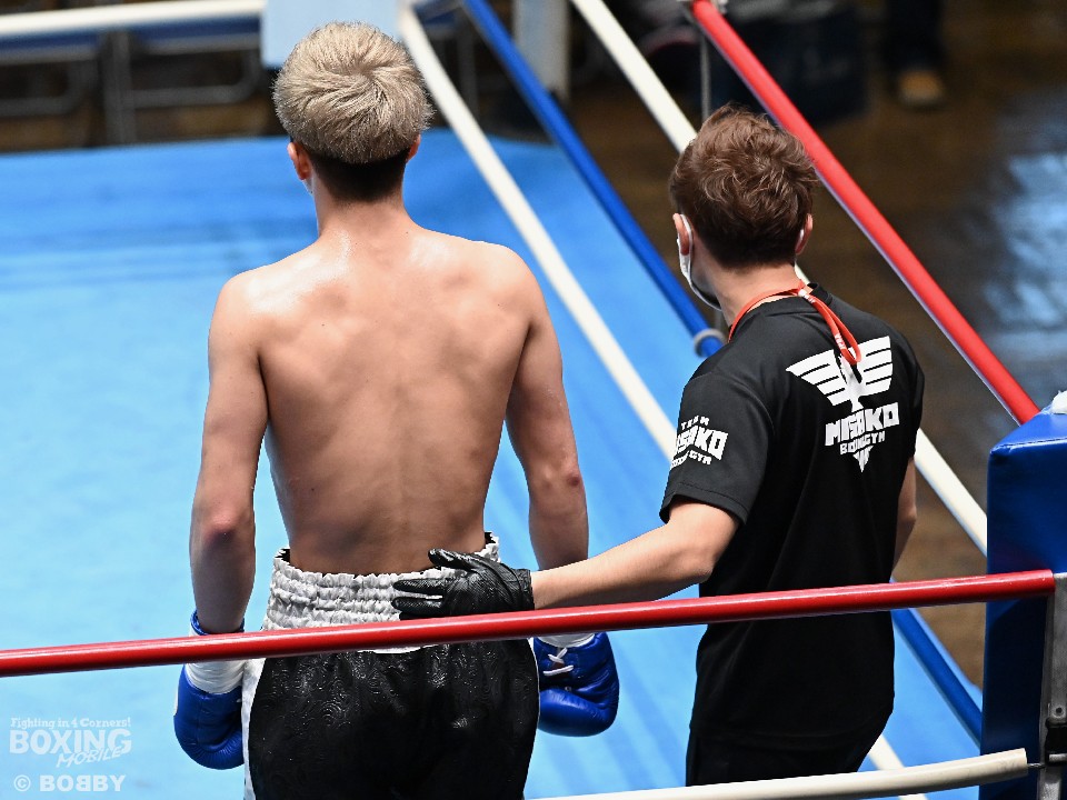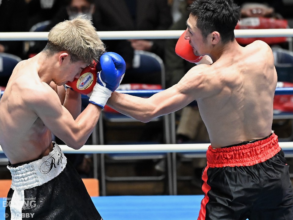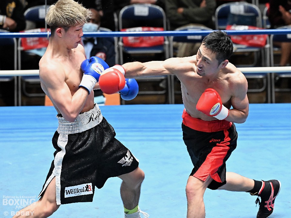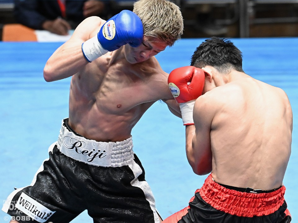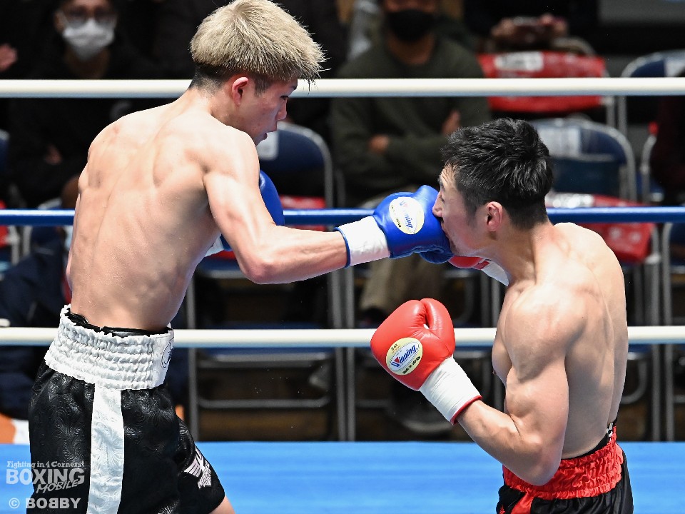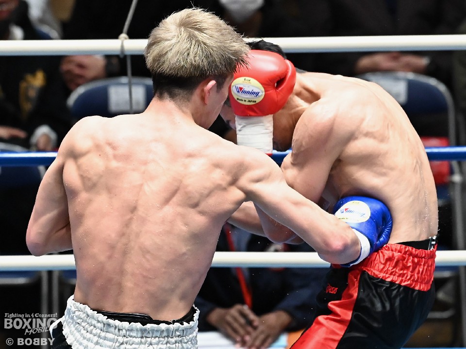 試合:プロ7戦目の藤崎と注目のプロデビュー戦を迎えた兒玉の対決。ジャブを突きながら距離を測る藤崎に対して、ガードしながらプレスをかけた兒玉。ジャブの突き合いは身長で勝る兒玉が有利。それでも、藤崎は左右に動いて中距離を保つことで、被弾しながらも決定打は許さず。ロングジャブを突いて右ストレートにつなぐ。最終回、プレスをかける兒玉の右ストレートをガードで逃れた藤崎。決定打には恵まれず判定に。