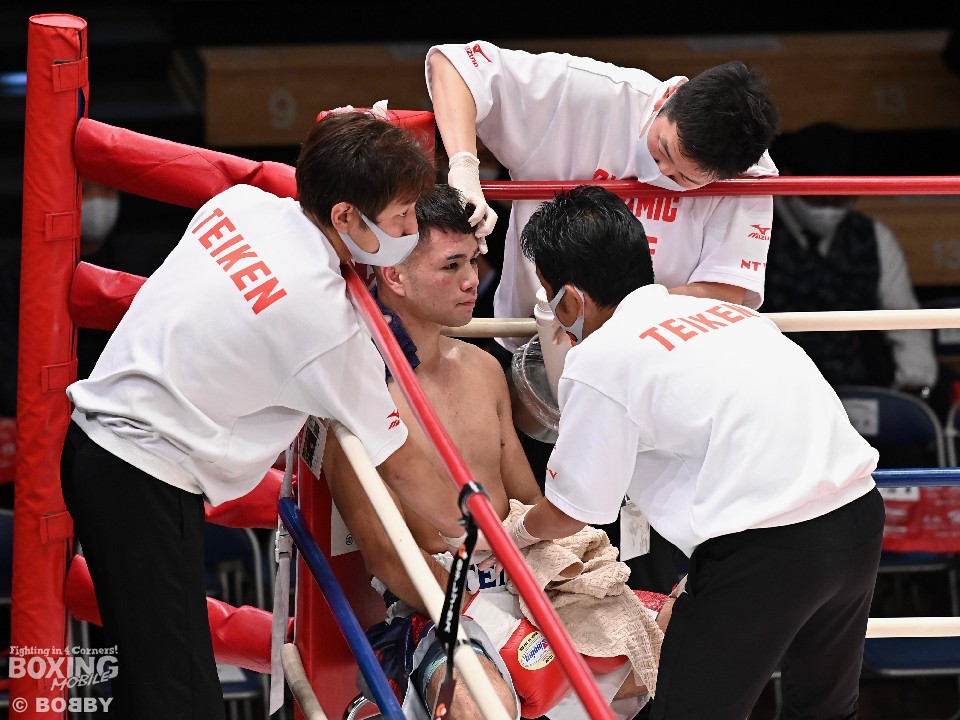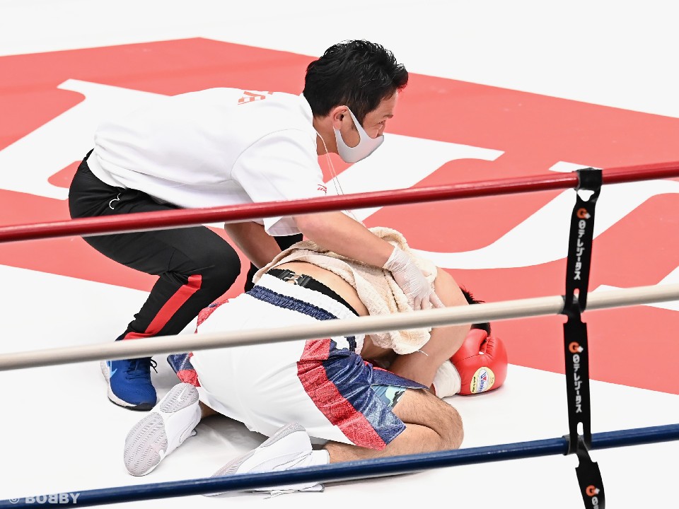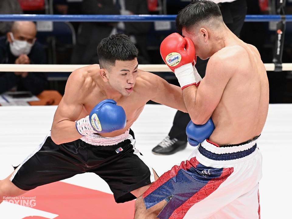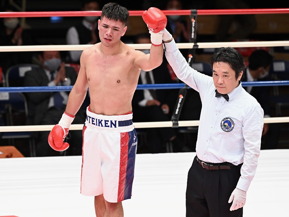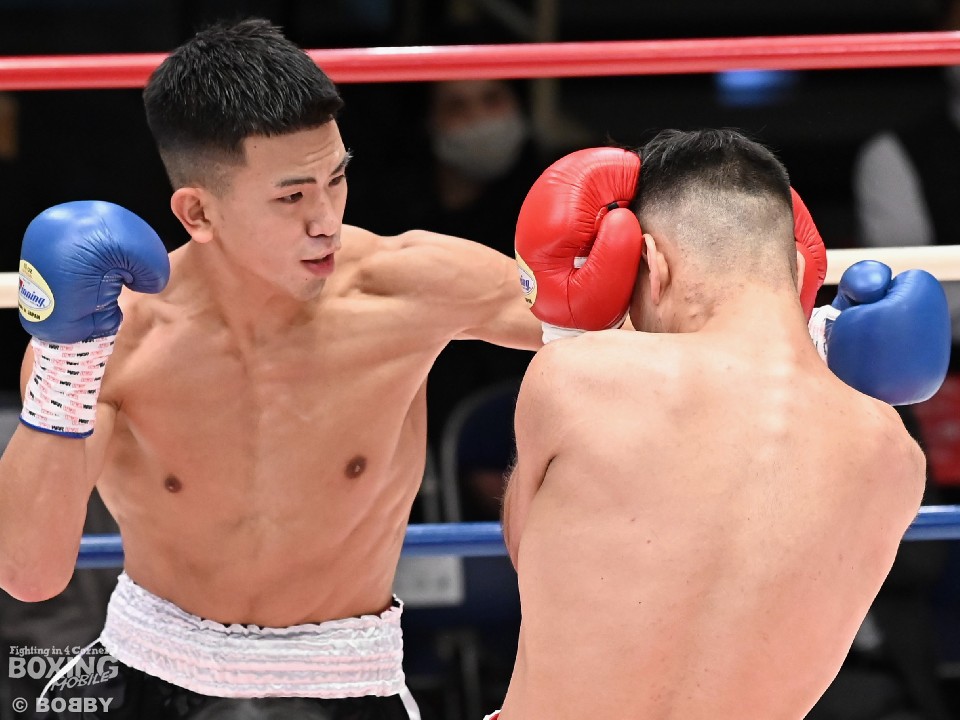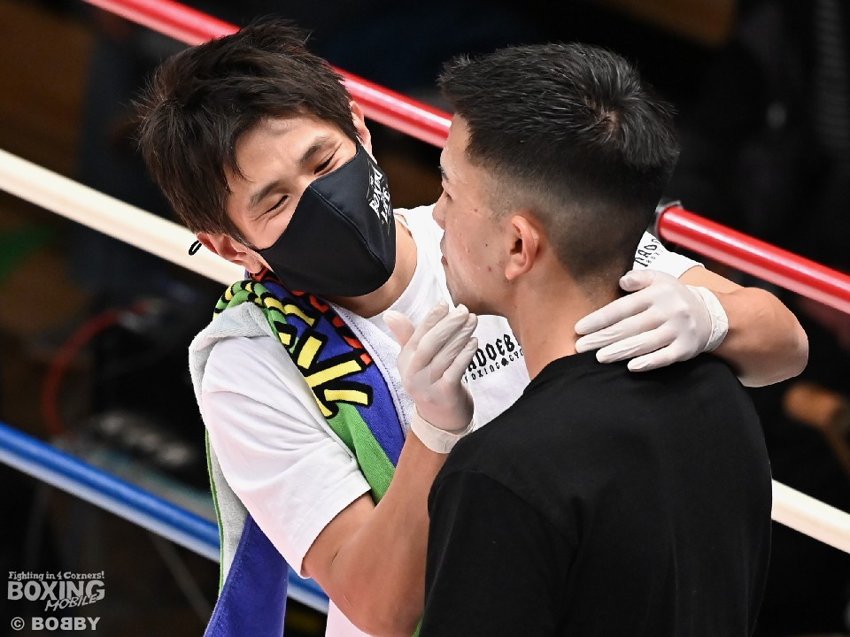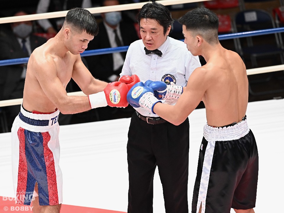 試合:昨年2月以来の再戦は、吉野がワンツー、右ボディで先制攻撃。対する伊藤は距離を取りながら右ストレートを上下に打ち分け応戦。2回、両者とも押し負けず一進一退の攻防を繰り広げていたが、ラウンド終了間際に相打ちとなるが吉野の左フックがジャストミート!痛烈なダウンを喫した伊藤は、なんとか立ち上がったが足元がフラつくと、レフェリーに止められた。リベンジを果たした吉野が3戦目でうれしい初勝利を挙げた。