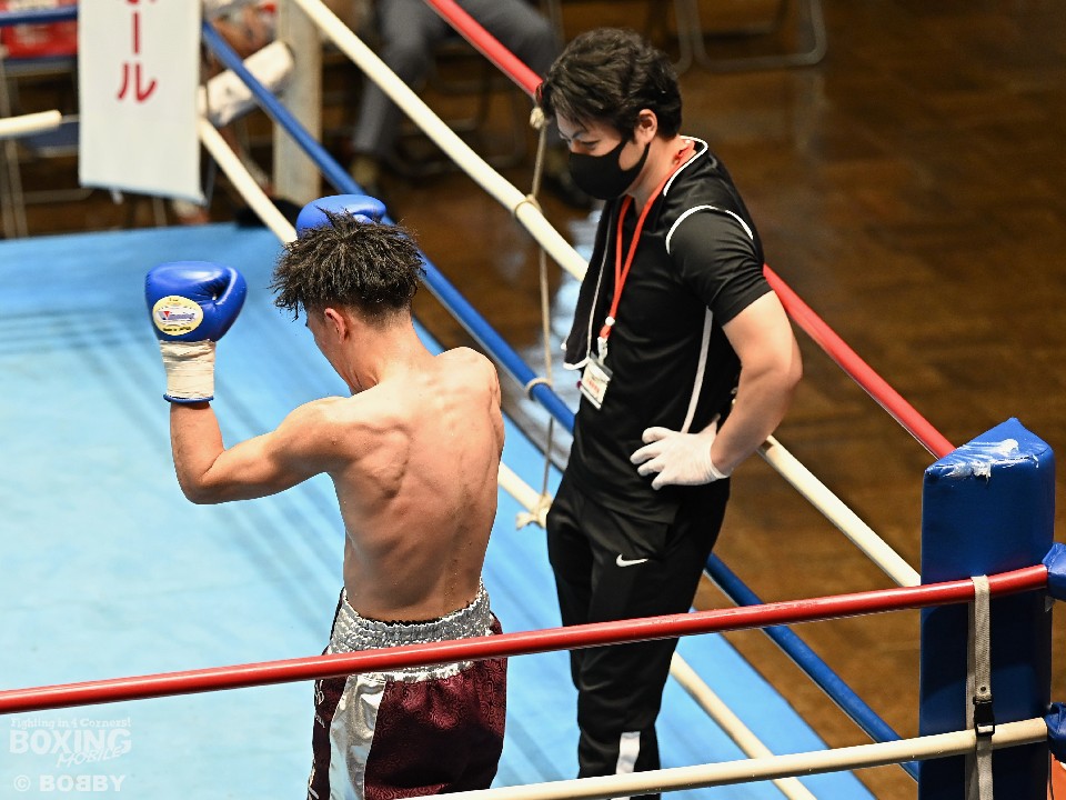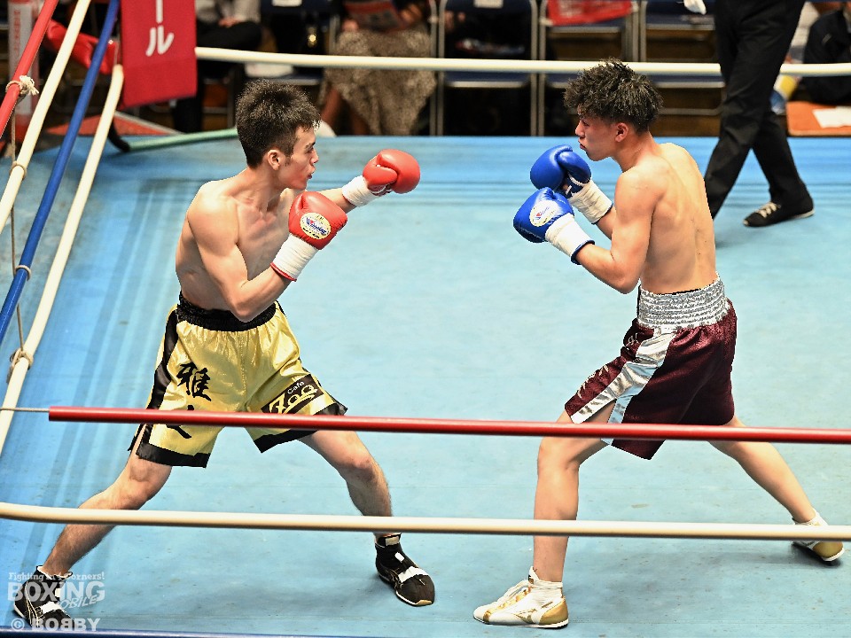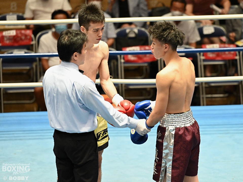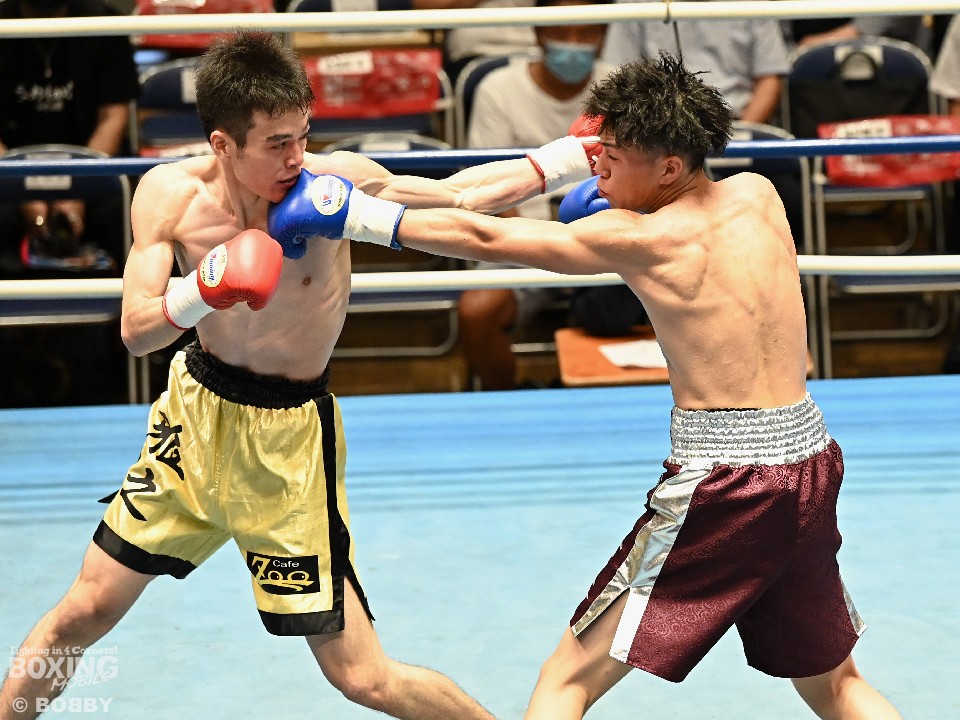 試合:この日がデビュー戦の林と仲野の対戦。初回、ジャブをつく両者。ワンツーから右ストレートを見せた林に対して、仲野が左フックを合わせた。2回、中間距離から右ストレートで飛び込む仲野に林も右ワンツーで中に入れさせず。3回、右ストレートからの左の返しでリズムを作る林に仲野は距離を詰めて追撃を許さず。最終回、左のストレートボディを織り混ぜて右ストレートを打つ仲野が林を追うと、試合終了間際に左右のフックで仲野がダウンを奪った。試合は判定に。