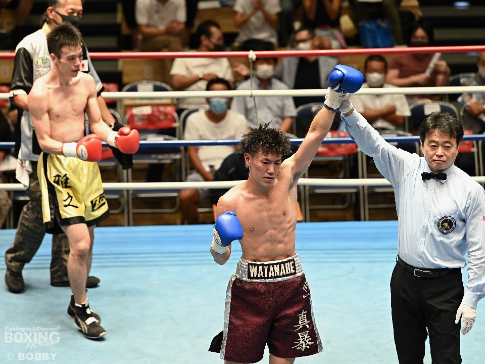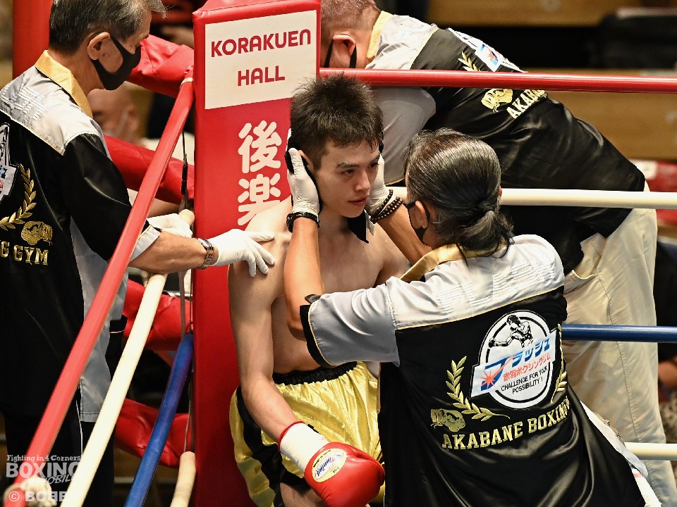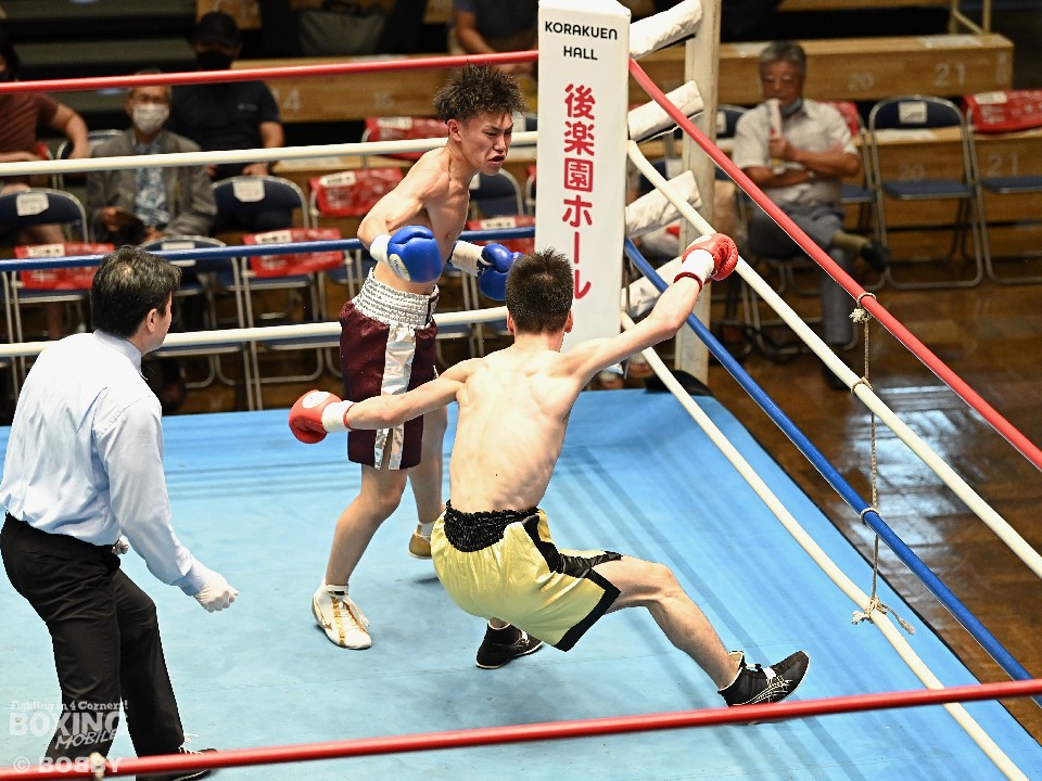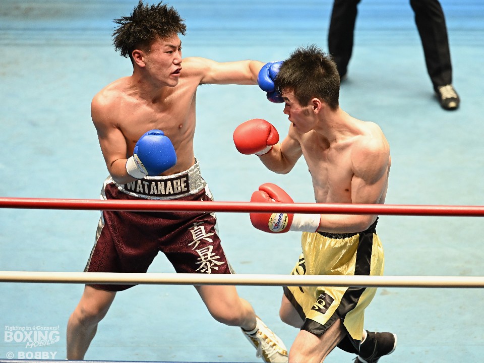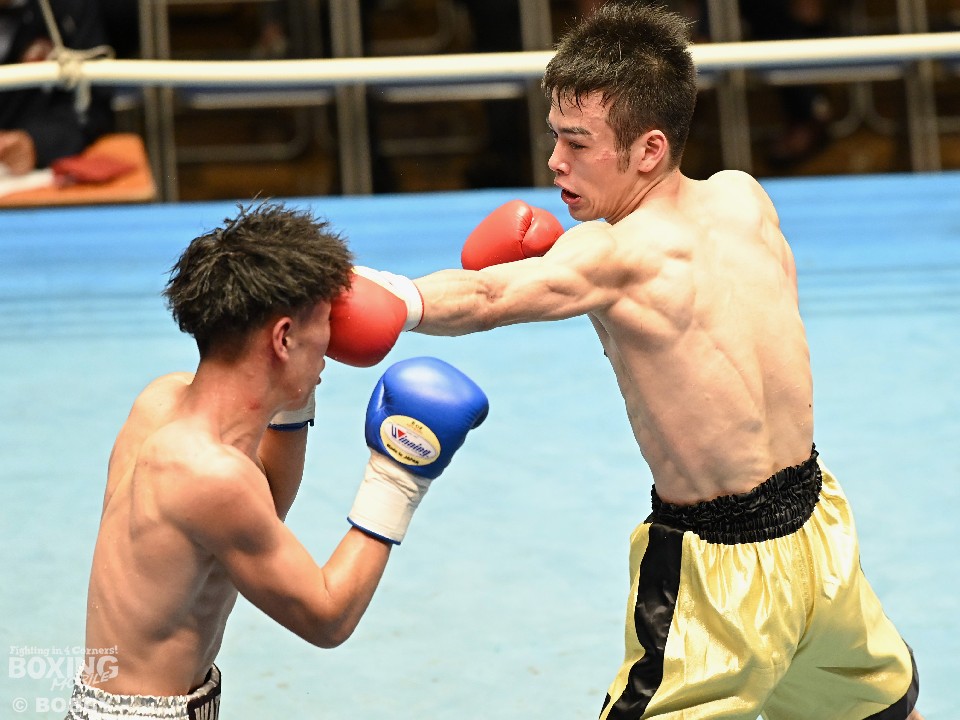 試合:この日がデビュー戦の林と仲野の対戦。初回、ジャブをつく両者。ワンツーから右ストレートを見せた林に対して、仲野が左フックを合わせた。2回、中間距離から右ストレートで飛び込む仲野に林も右ワンツーで中に入れさせず。3回、右ストレートからの左の返しでリズムを作る林に仲野は距離を詰めて追撃を許さず。最終回、左のストレートボディを織り混ぜて右ストレートを打つ仲野が林を追うと、試合終了間際に左右のフックで仲野がダウンを奪った。試合は判定に。