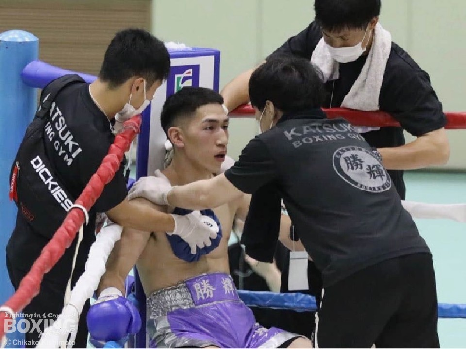 試合:静かさが漂う中、始まった第1試合。まずは平井が右オーバーハンドをヒットし先制攻撃を仕掛けると、さらに左ボディを決めて先手を奪うことに成功。高橋は、ジャブで距離を測るが警戒しているのか右につなげることができない。3回、平井は力強い右ストレートで攻勢をかけると、高橋は顎を骨折した疑いがあり、ラウンド終了時に陣営が棄権を申し出た。