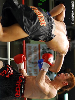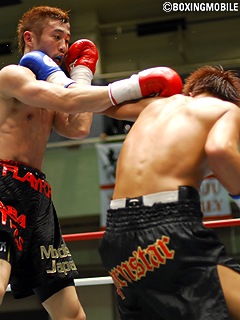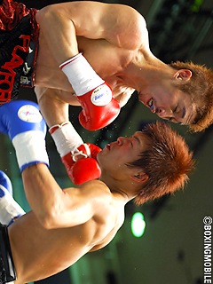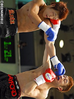試合:立ち上がりからほぼノーガード状態で詰め寄り、野球のピッチングのように体ごとフックを繰り出す小口。一方、和宇慶は自分の距離で戦うべく体を入れ替えながら、ジャブ、ワンツーで試合を組み立てていく。2R、フックで流れた体を立て直そうとした小口にすかさず和宇慶が左を合わせ、小口が尻もちをつくようにダウン。中盤、和宇慶はフェイントを入れながらワンツー、さらに小口がフックを振り回しながら飛び込んでくるところをカウンターであわせていく。最終8R、的確さに欠ける小口の大胆な踏み込みも、バッティングで減点1が課せられた。