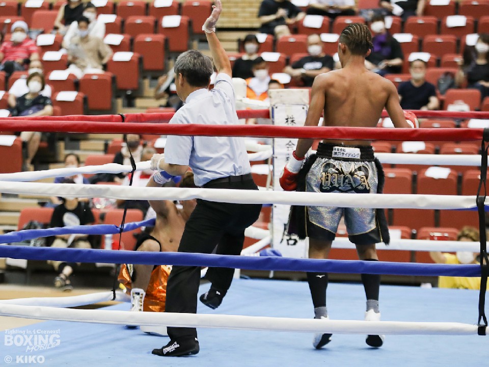 試合:原が遠い距離からジャブで組み立てるとワンツーをヒット。躍動感のある動きでペースを握った。2回も原がスピードの差を見せて左を軸にダメージを与えるとラウンド終盤にワンツーから右をフォローしてダウンを奪った。3回、なんとか流れを変えたい高須賀だが、突破口を開くことができず。冷静な試合を見せた原はワンツーで後退させると左フックでキャンバスに沈めた。日本ランカー初挑戦の原がランキング入りを濃厚とした。
