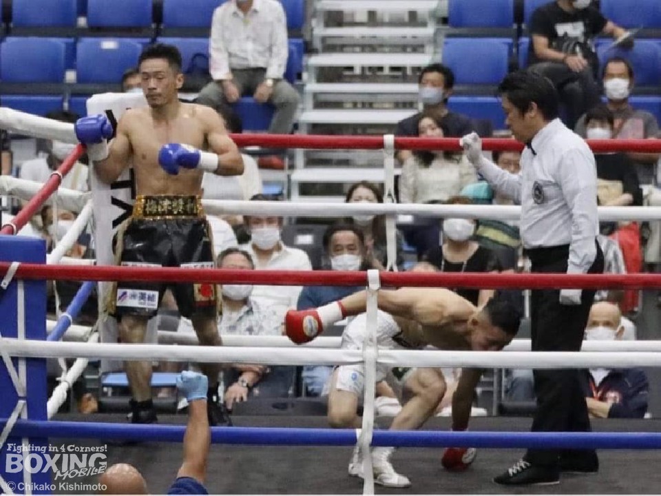 試合:移籍初戦となった寺崎と、これがデビュー戦となる梅津の対戦。開始から梅津がいきなり右ストレートを好打させると、連打でダウンを奪った。再開後は寺崎も応じてスリリングな打ち合いを展開すると、梅津は続けて右で再度倒してレフェリーストップ。逆転KO勝利が多い寺崎を相手に梅津が衝撃の初回TKO勝ちでデビュー戦を飾った。