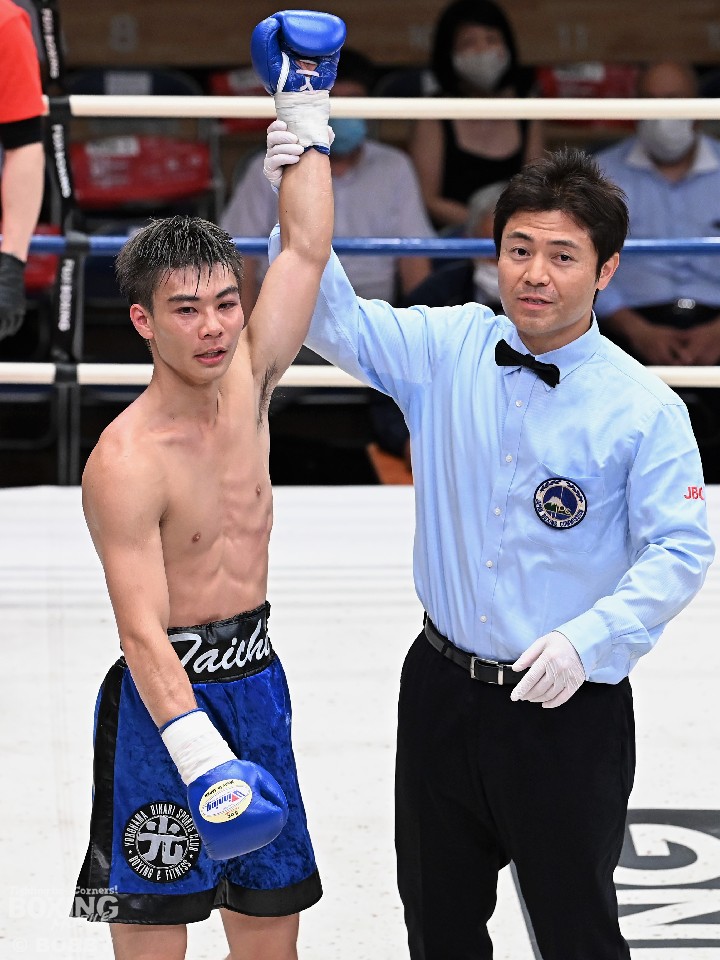 試合:初回、真野が足でリズムを取りながら右ストレートを叩き込み先制攻撃。しかし、山田はこの右をブロックすると左を突いて試合を組み立てた。2回、真野はプレスをかけてワンツーで顔を弾くと返しのパンチをバックステップで回避。両者ともキビキビとした動きを見せるが、単発の右ストレートをヒットした真野が見栄えの良さをアピールした。4回、山田は速いジャブを打つものの、右につなげることができず明確なポイントを奪うことができなかった。