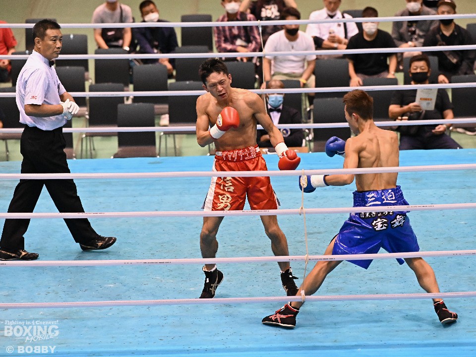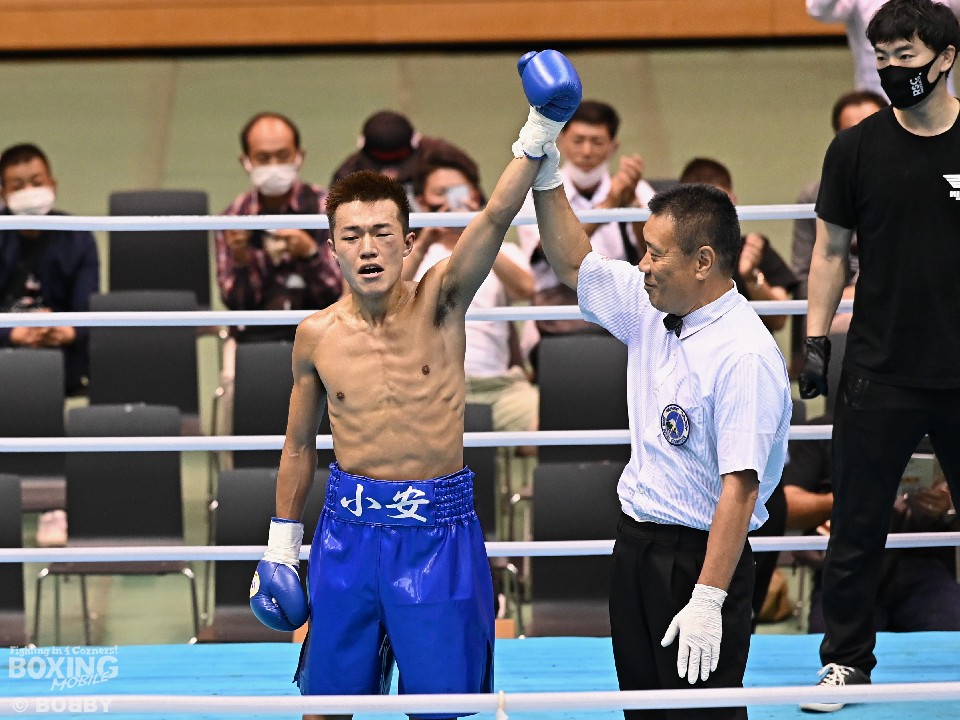 試合:人見とこれがプロデビュー戦の小安。初回、下から突き上げるようなワンツーで右ストレートを連打した小安に対して、人見もワンツーの右ストレートで応戦。会場からは大きな拍手が続いた。2回、右ストレートに右アッパーを織り交ぜる小安に人見は接近戦から左右の連打で挽回。クリンチ無しの根比べが続いた。3回、右ストレートを当てた小安が主導権を握ると防戦一方となった人見を見て、レフェリーが試合を止めた。