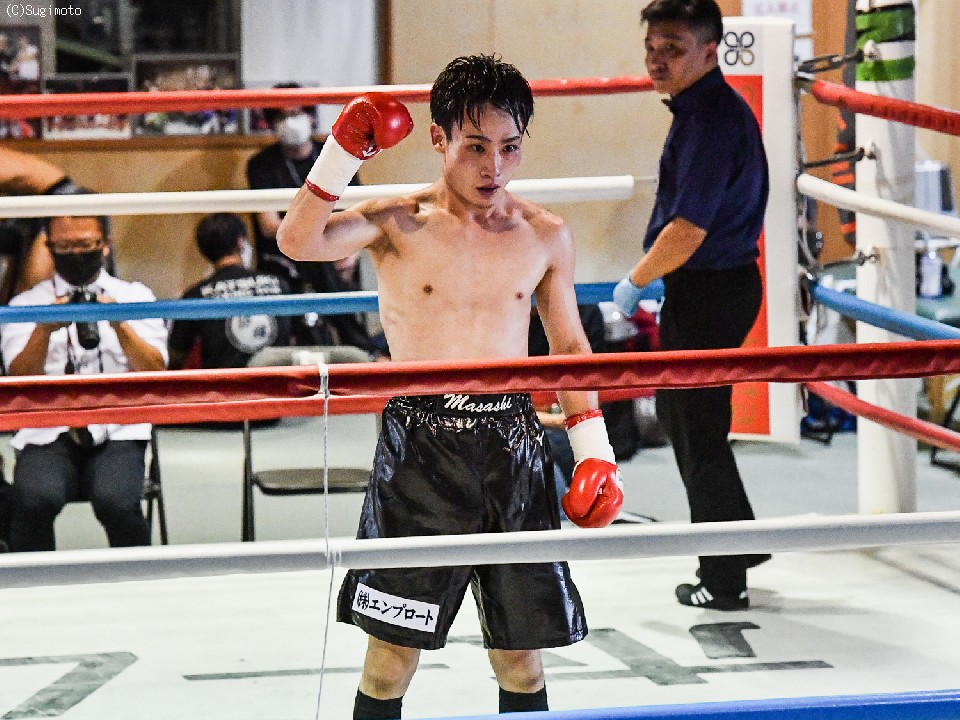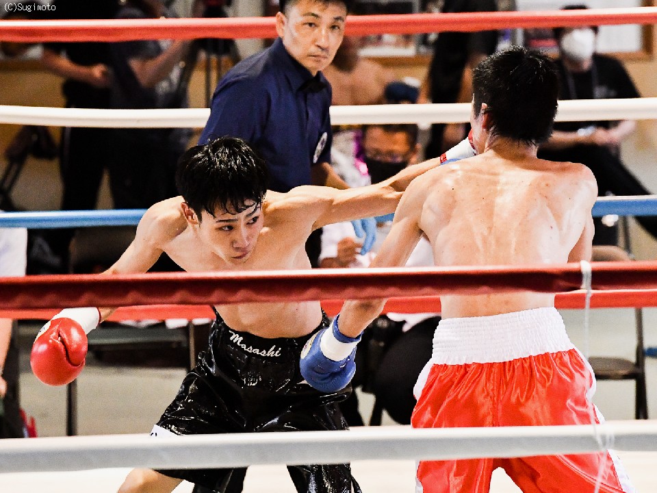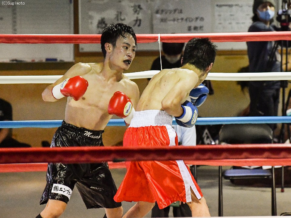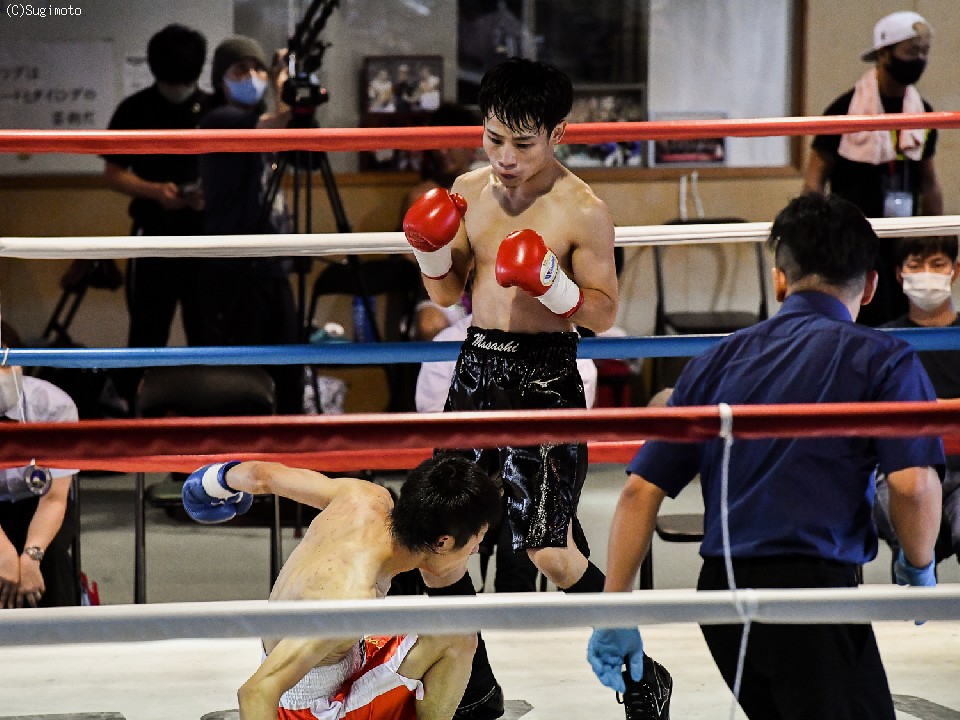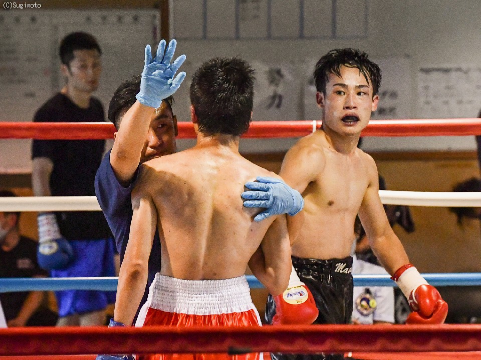 試合:初回、池田がグイグイと距離を詰めると、パンチをまとめて先制のダウンを奪う。距離を取りたい伊藤だが、乱戦に巻き込まれ本領を発揮できず。ラウンド終盤、池田は右カウンターで2度目のダウンを奪った。3回、伊藤はジャブから立て直しを図るが池田のペースは変わらず、右ストレートでガクッと腰を沈めさせた。4回、両者とも懸命にパンチを繰り出したが、池田の回転力が勝ると最後はワンツーでぐらつかせてレフェリーストップに持ち込んだ。
