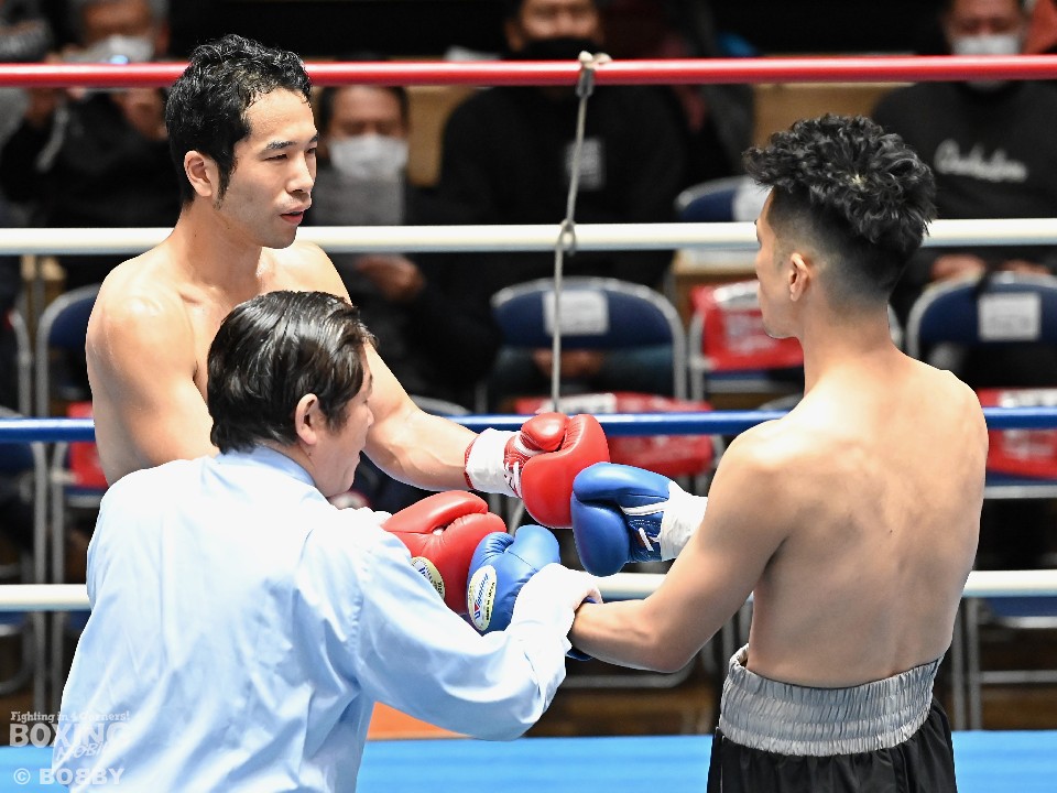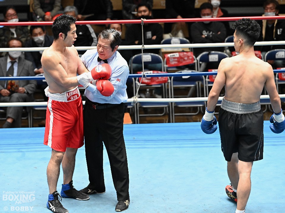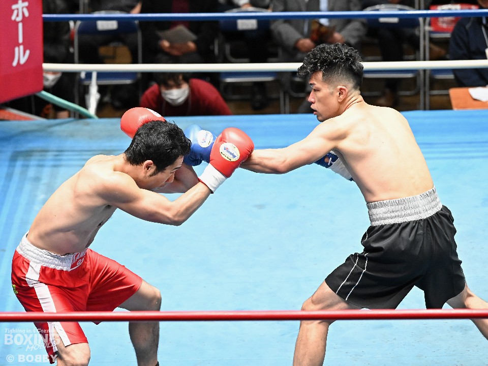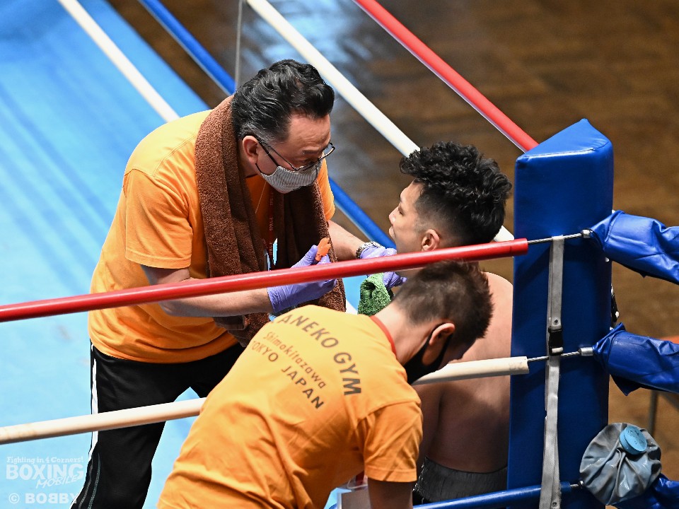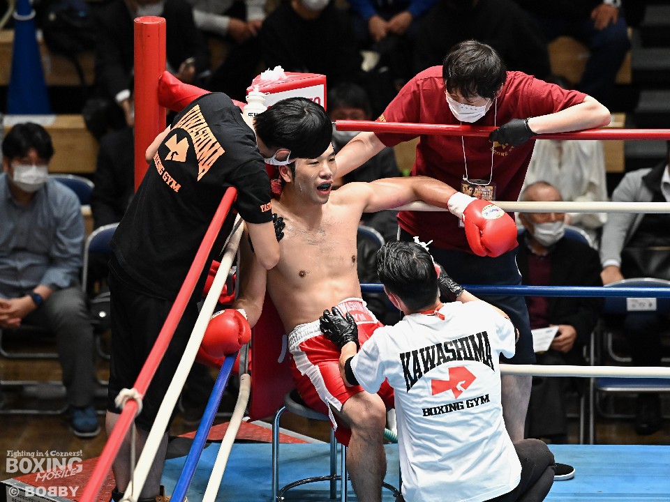 試合:連敗脱出を誓う三宅が左右のロングフックで攻め立てるが、高橋は真っ向から応戦。ワンツー連打でグラつかせて豊富な手数でダメージを与えた。2回、ペースを握った高橋が攻め立てたところでレフェリーが割って入った。